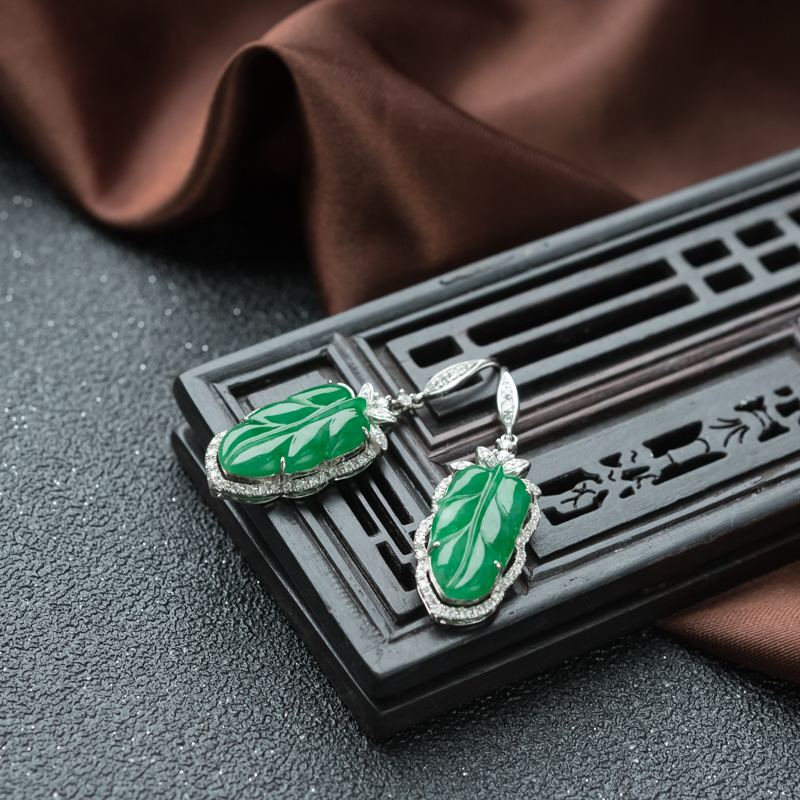 • 18K糯冰种翠绿翡翠金枝玉叶耳坠