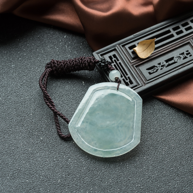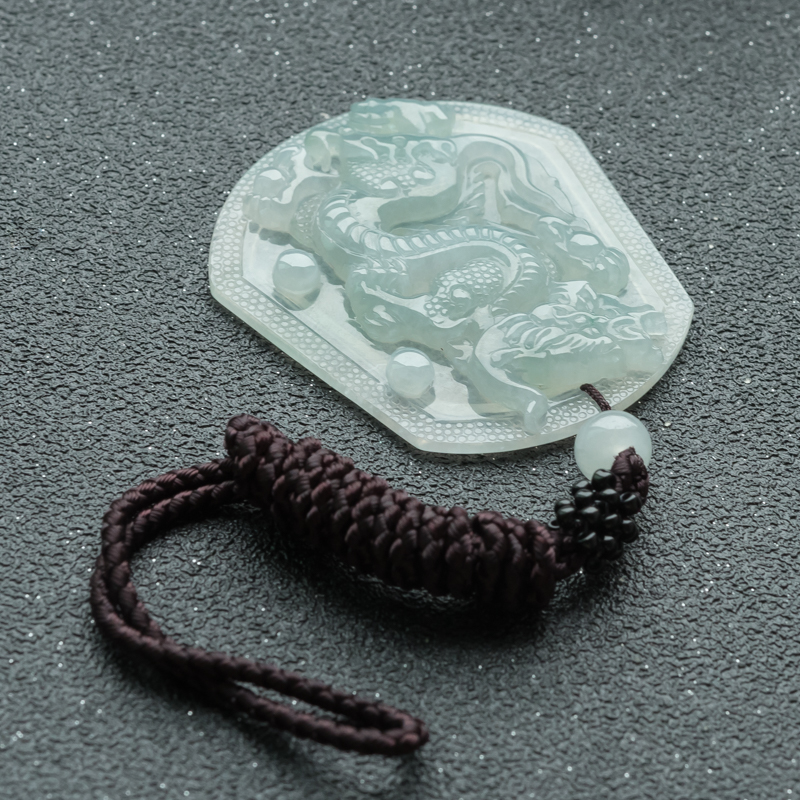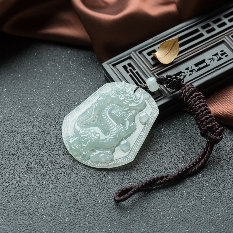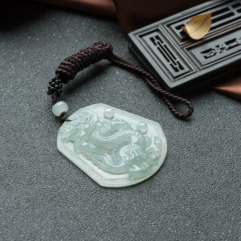 • 糯冰种翡翠龙牌吊坠