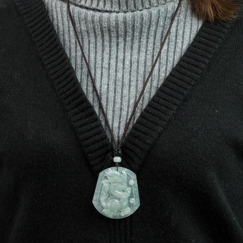 • [名  称] 糯冰种翡翠龙牌吊坠