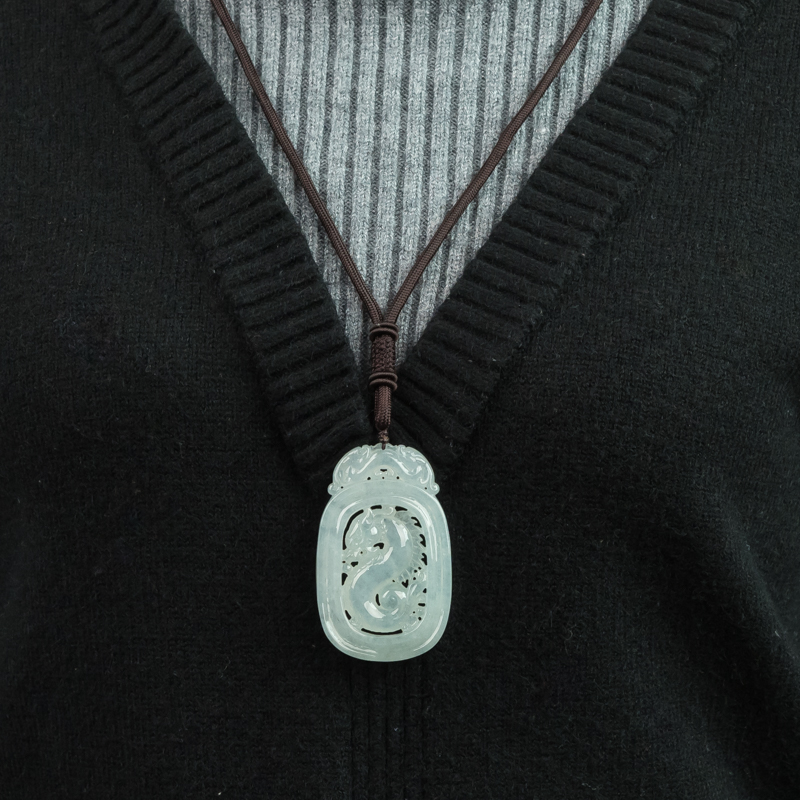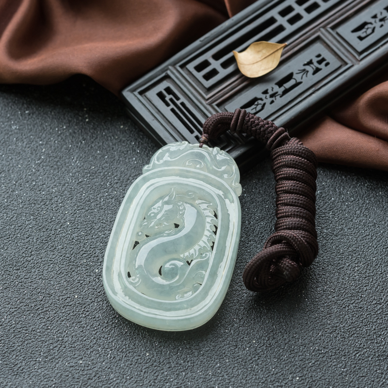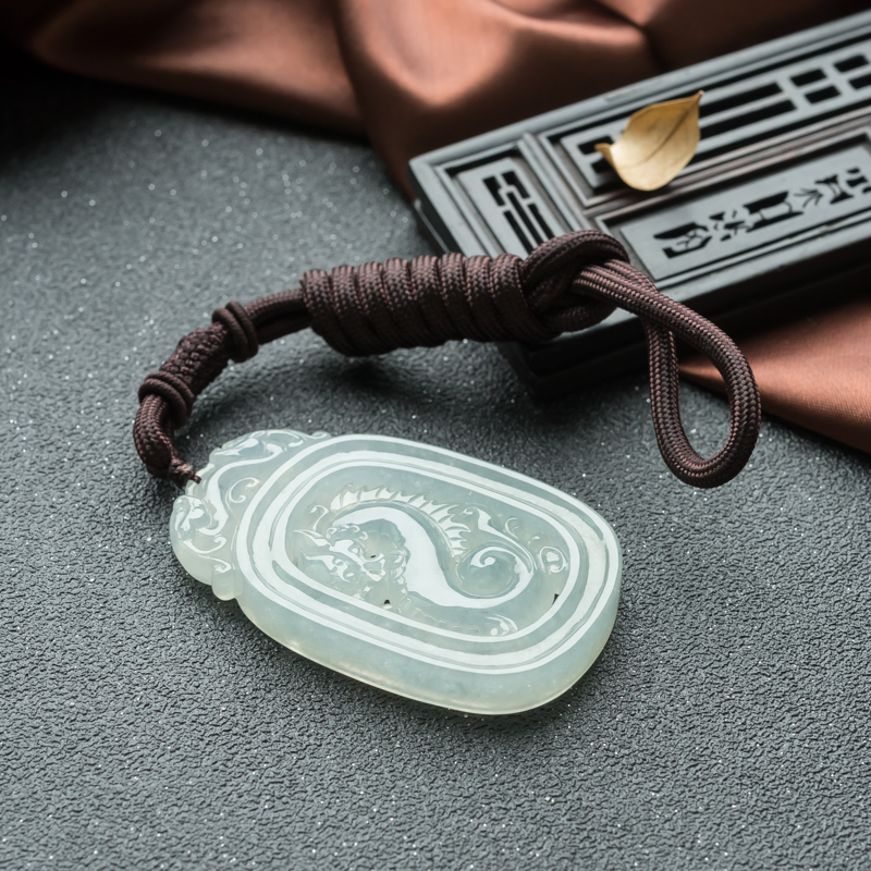 • [名  称] 糯冰种翡翠龙牌吊坠