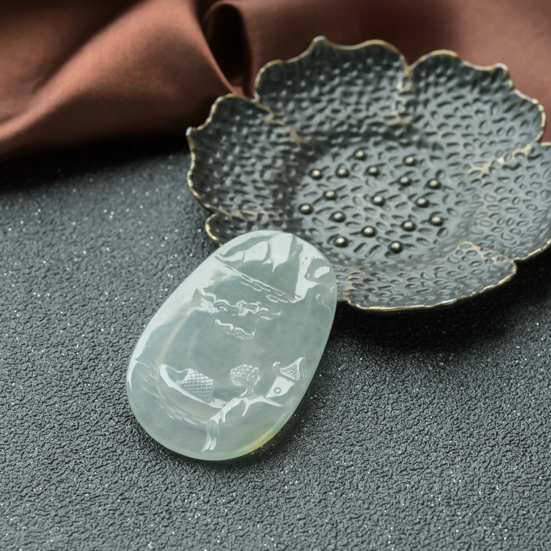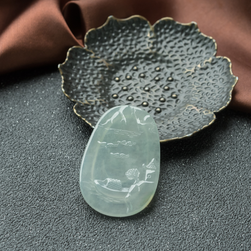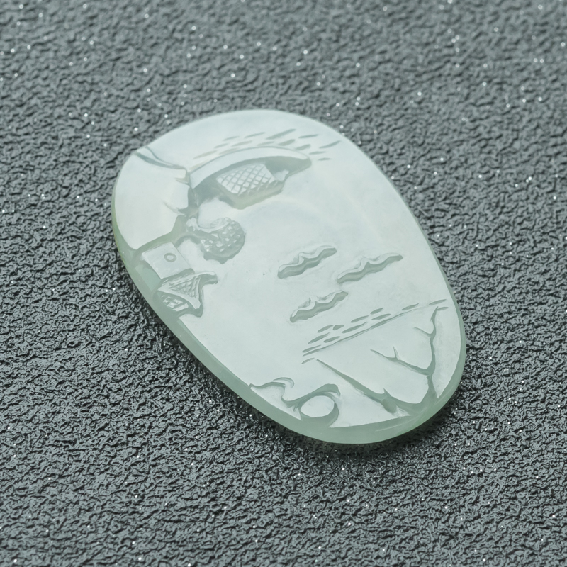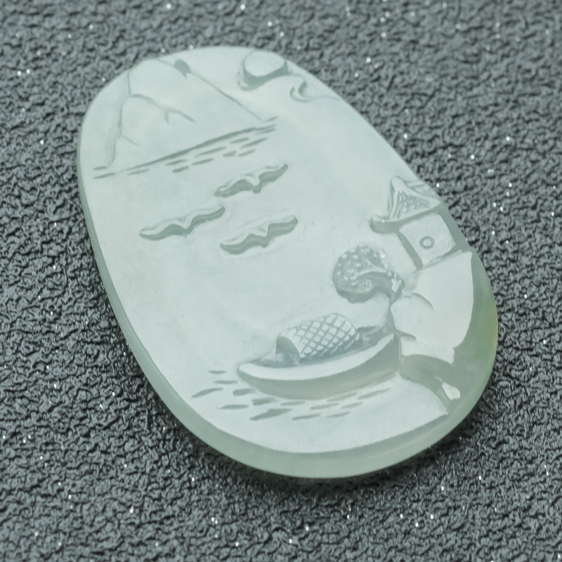 • 糯冰种淡晴水翡翠山水意境吊坠