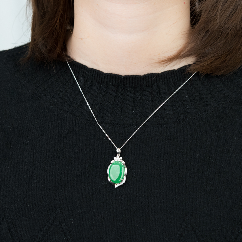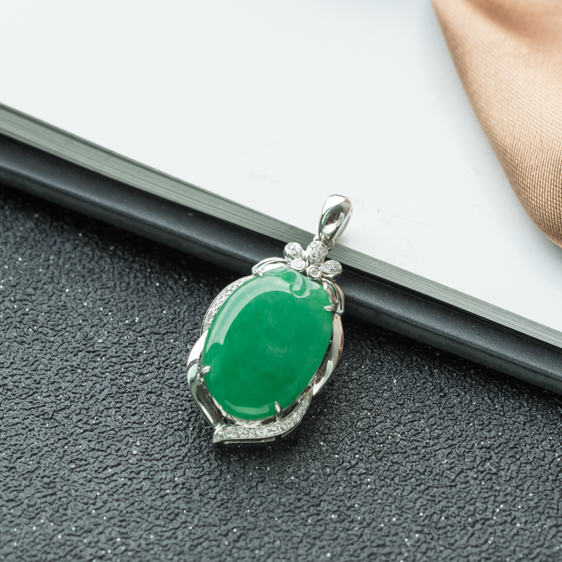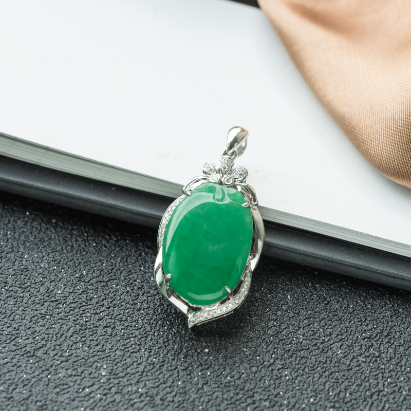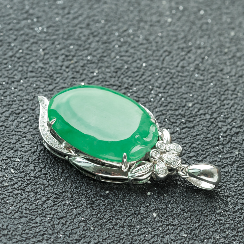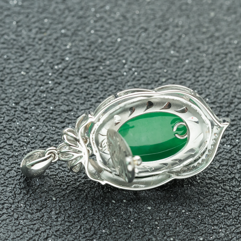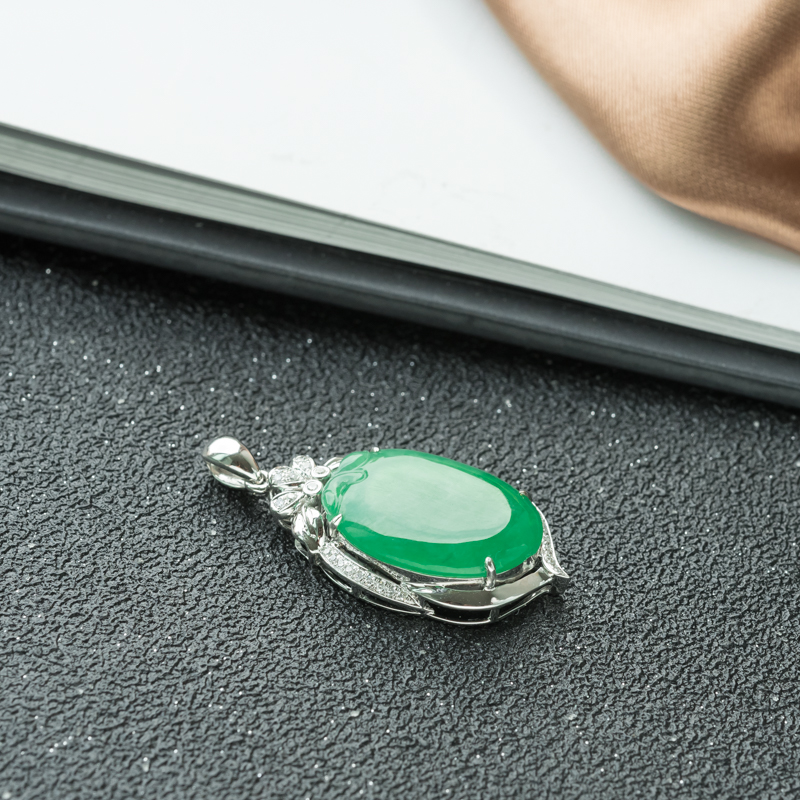 • 18K糯冰种翠绿翡翠福瓜吊坠