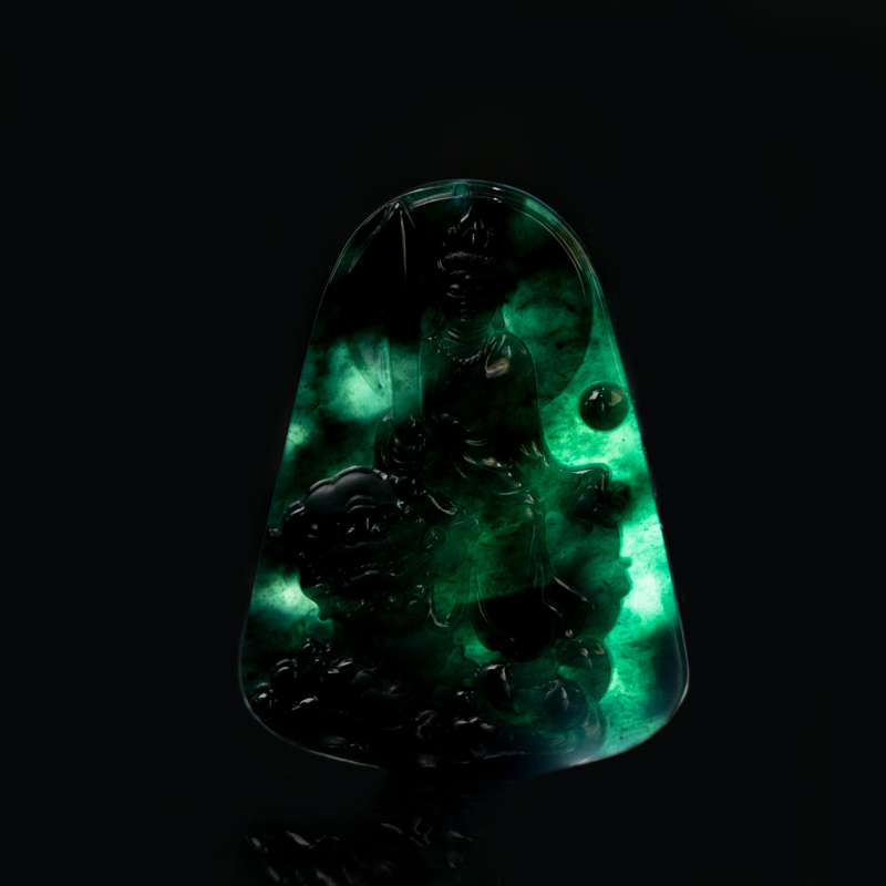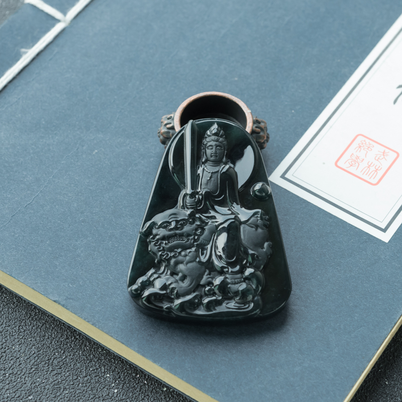 • [名  称] 糯冰种墨翠文殊菩萨吊坠