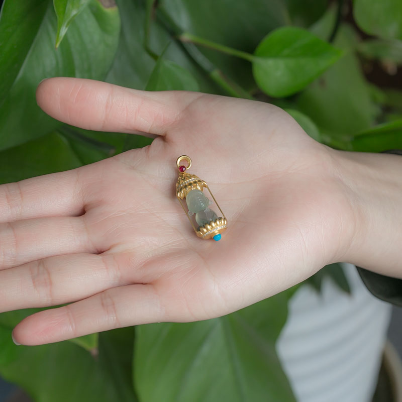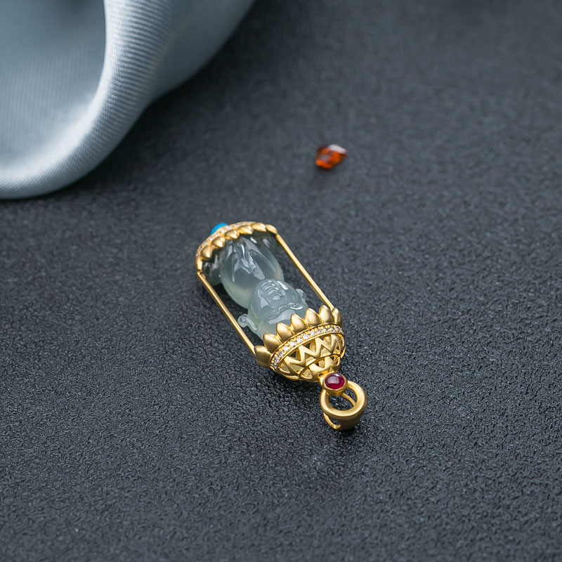 • 18K糯冰种淡晴水翡翠宝宝佛吊坠