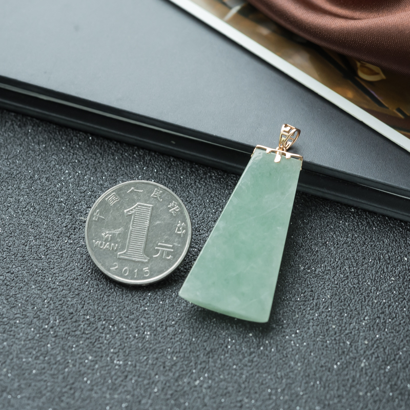 • 18K糯冰种浅绿翡翠无事牌吊坠