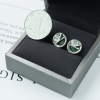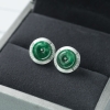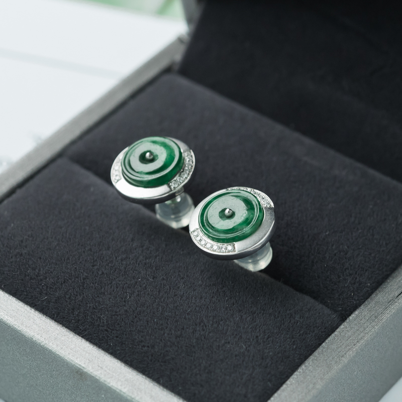 • 18K糯冰种翠绿翡翠平安扣耳钉