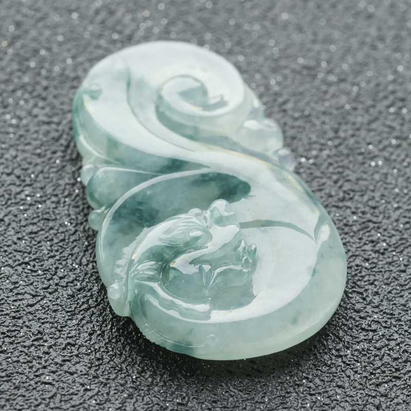 • [名  称] 糯冰种飘花翡翠仿古龙吊坠