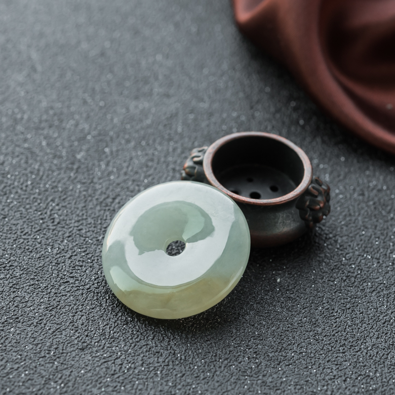 • 糯冰种飘黄翡翡翠平安扣吊坠