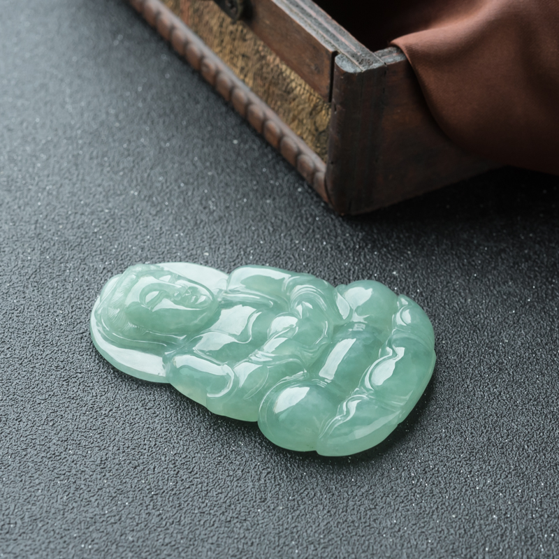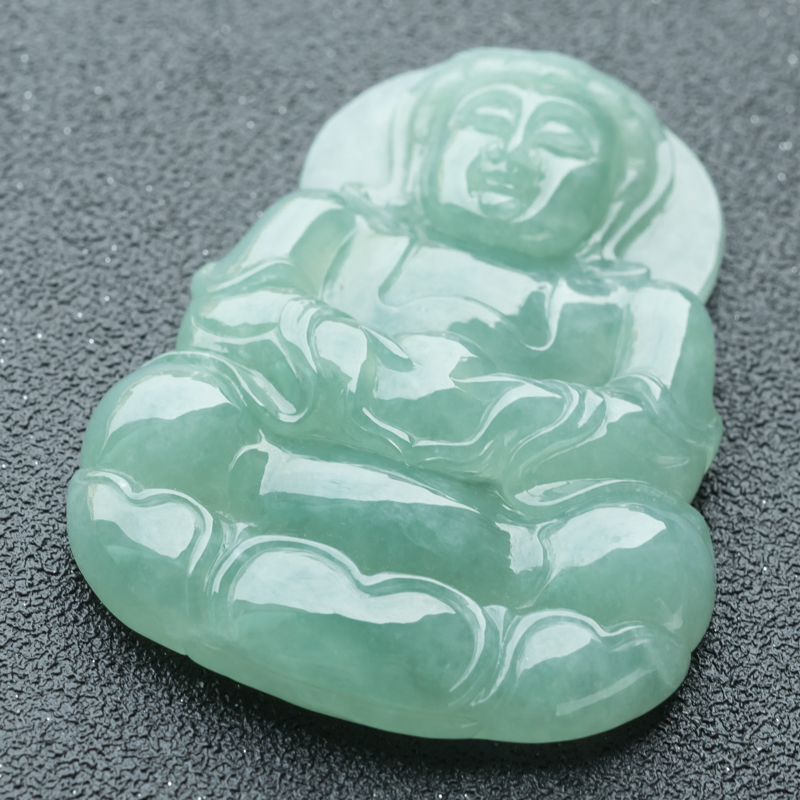 • 糯冰种浅绿翡翠观音吊坠