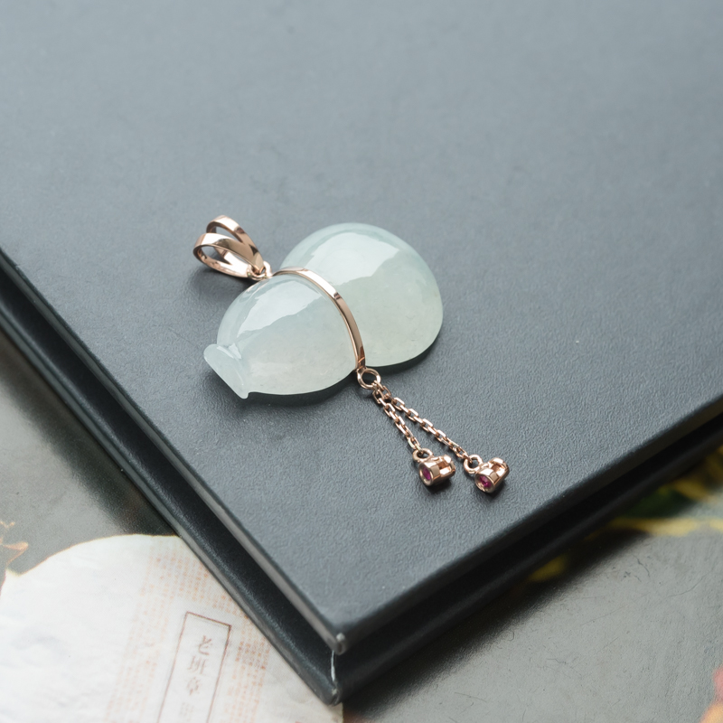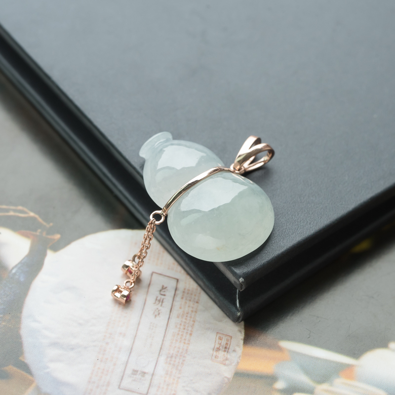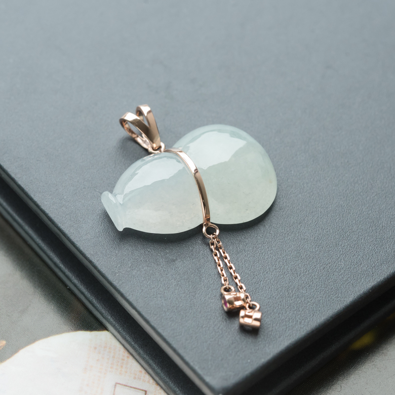 • 18K糯冰种浅绿翡翠福禄吊坠