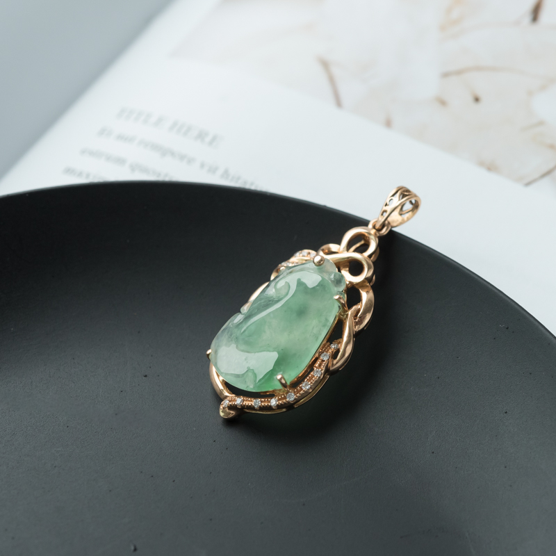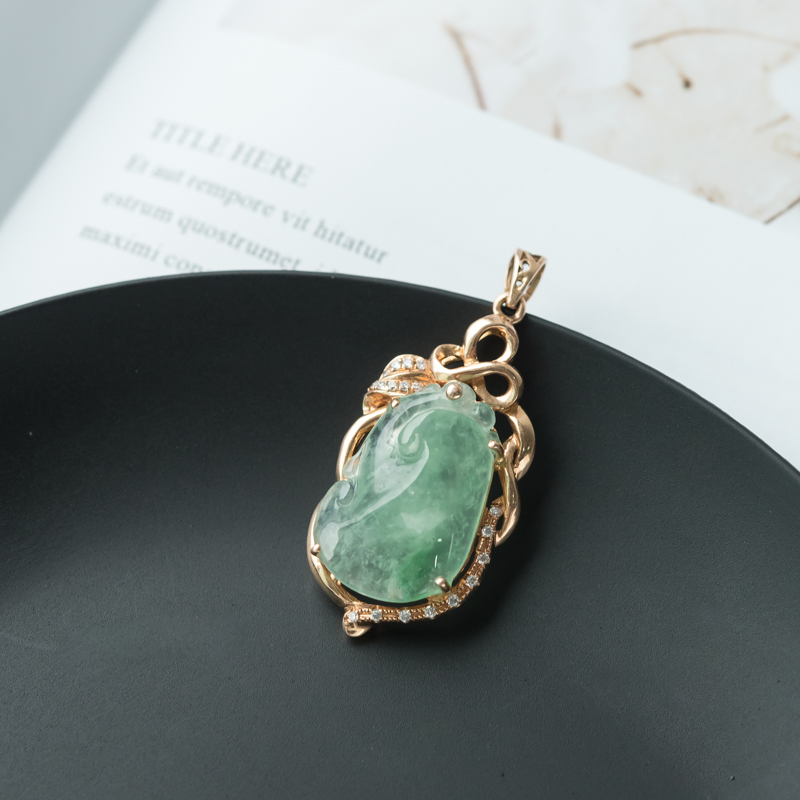 • [名  称] 18K糯冰种飘翠翡翠如意吊坠