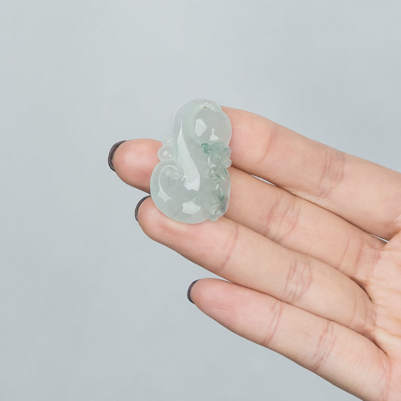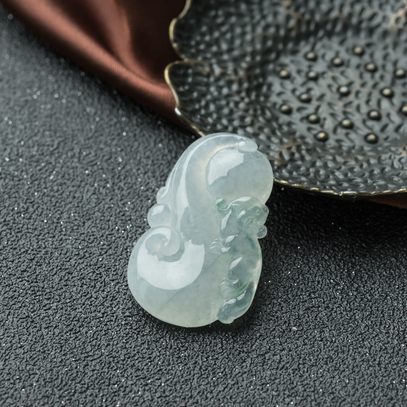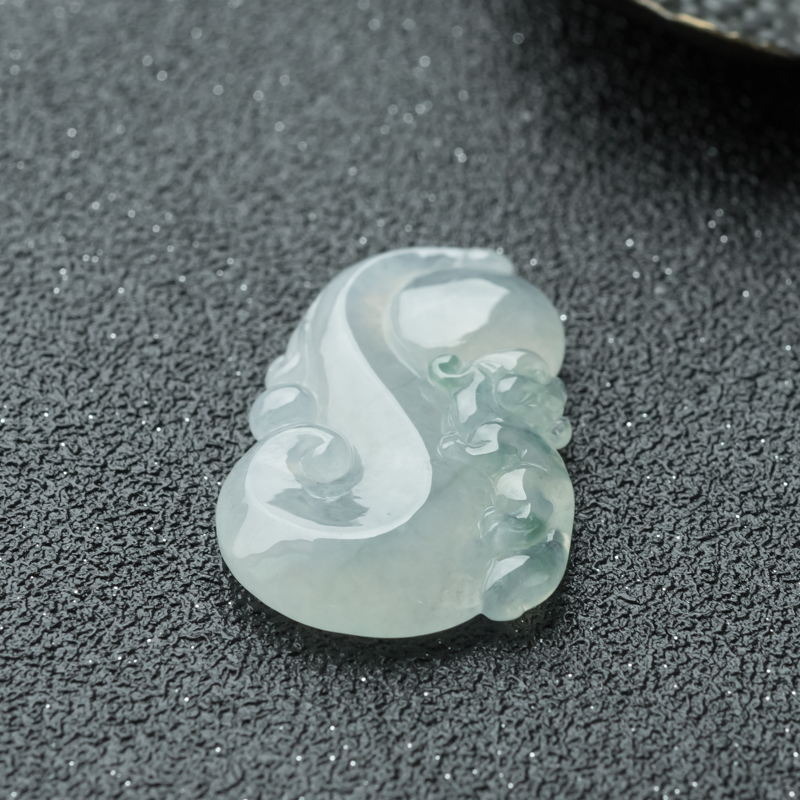 • 糯冰种飘花翡翠瑞兽吊坠