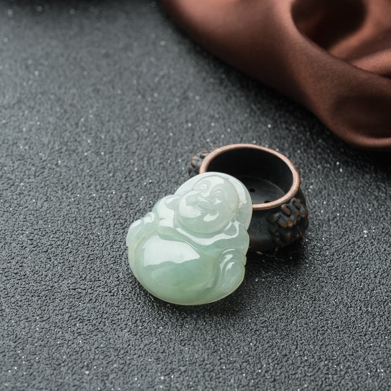 • 糯冰种浅绿翡翠弥勒佛吊坠
