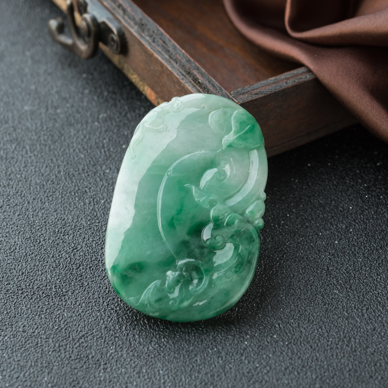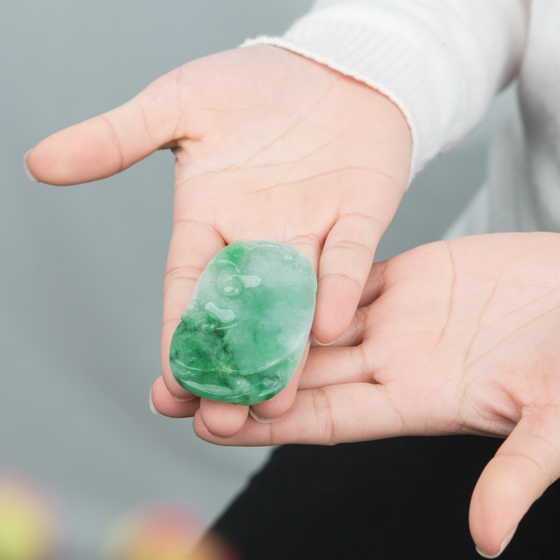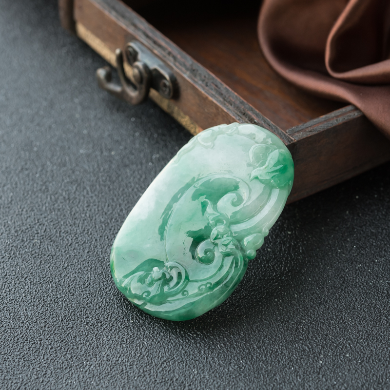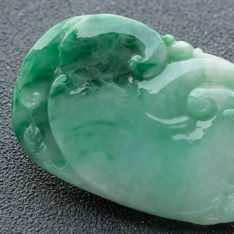 • 糯冰种飘翠翡翠如意吊坠
