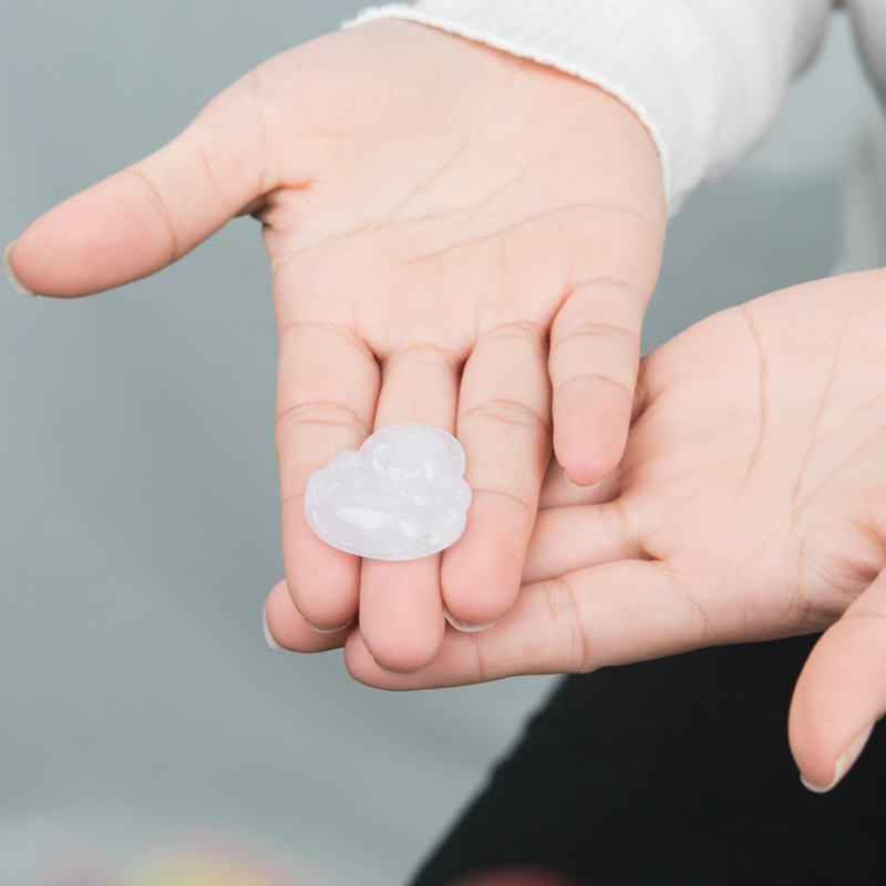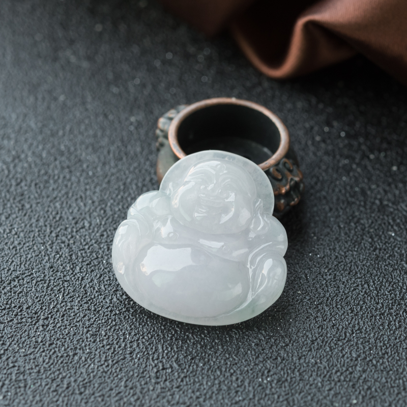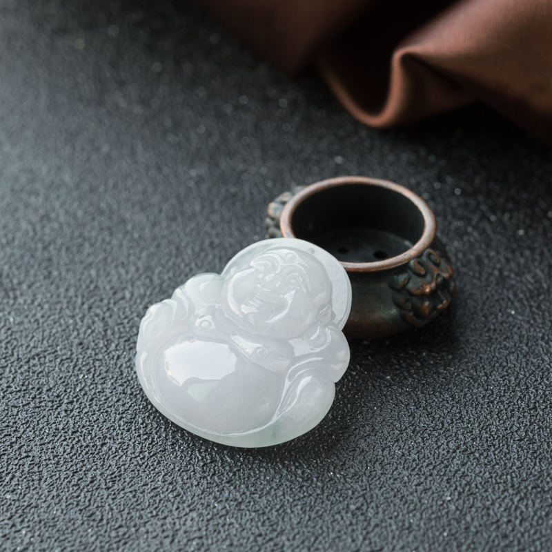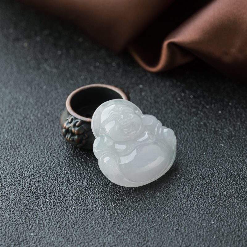• 糯冰种飘翠翡翠弥勒佛吊坠