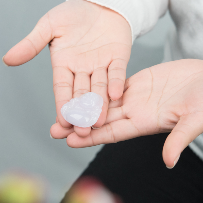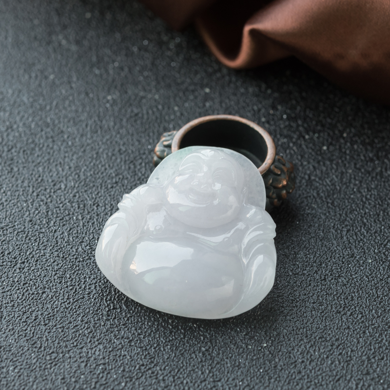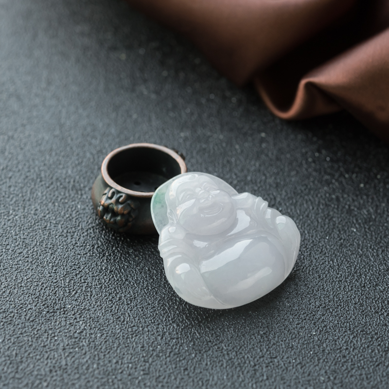 • 糯冰种飘翠翡翠弥勒佛吊坠