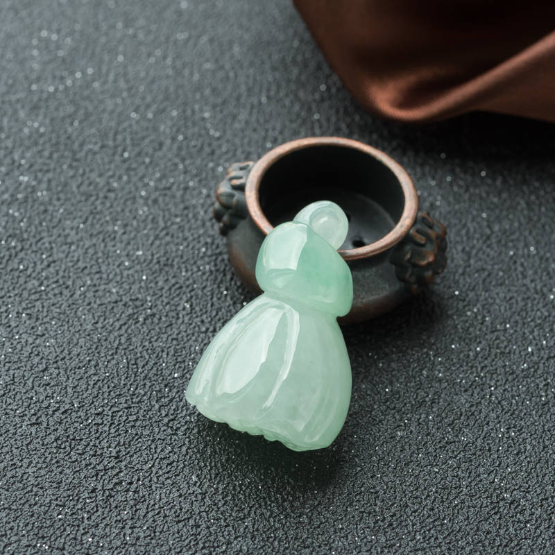 • [名  称] 糯冰种浅绿翡翠连生贵子吊坠