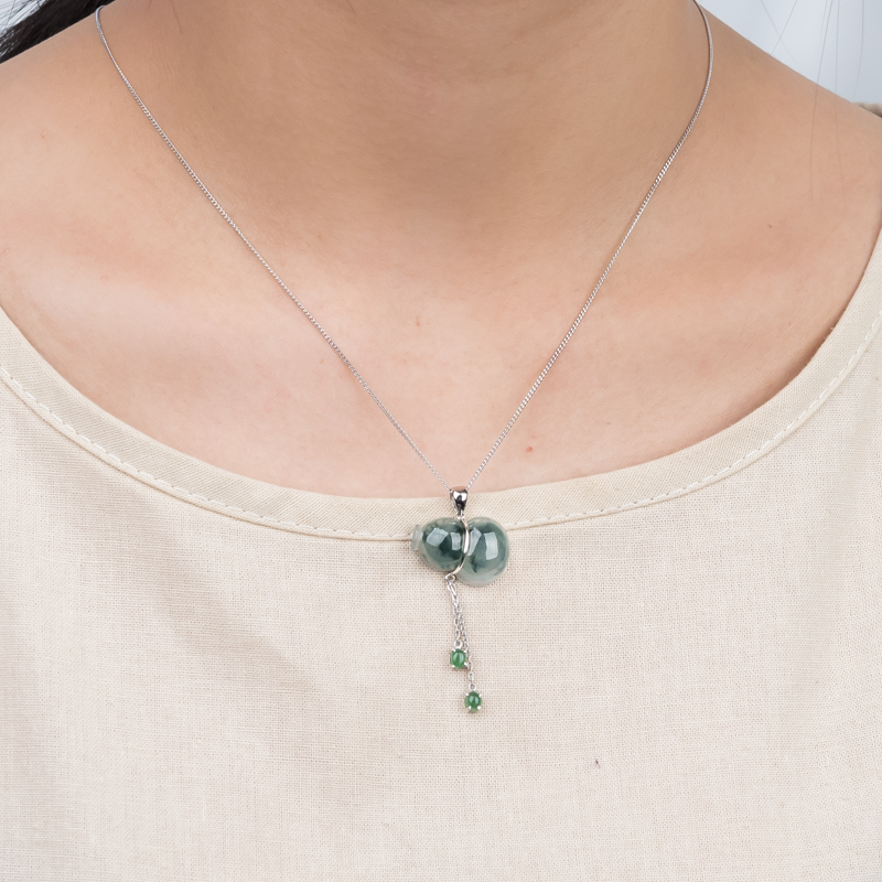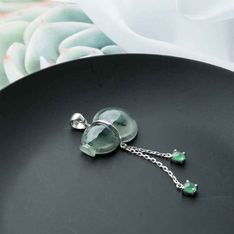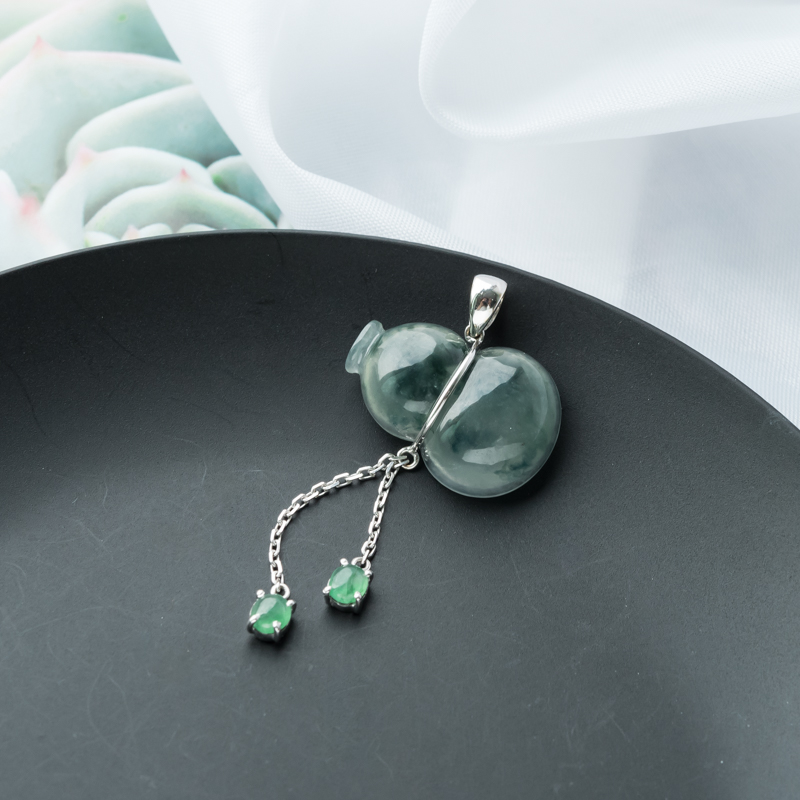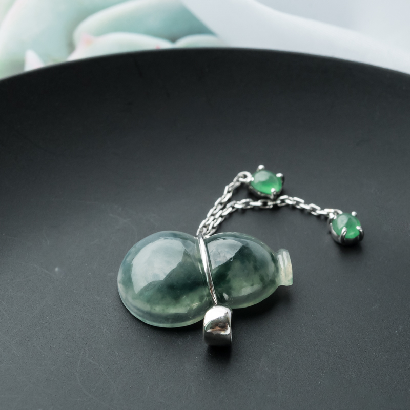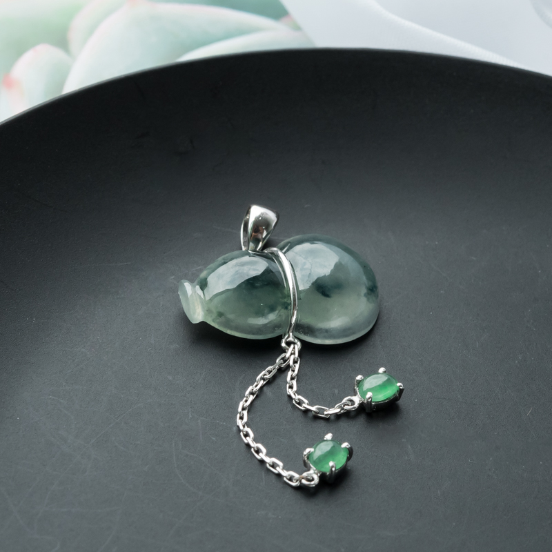 • 18K糯冰种飘花翡翠福禄吊坠
