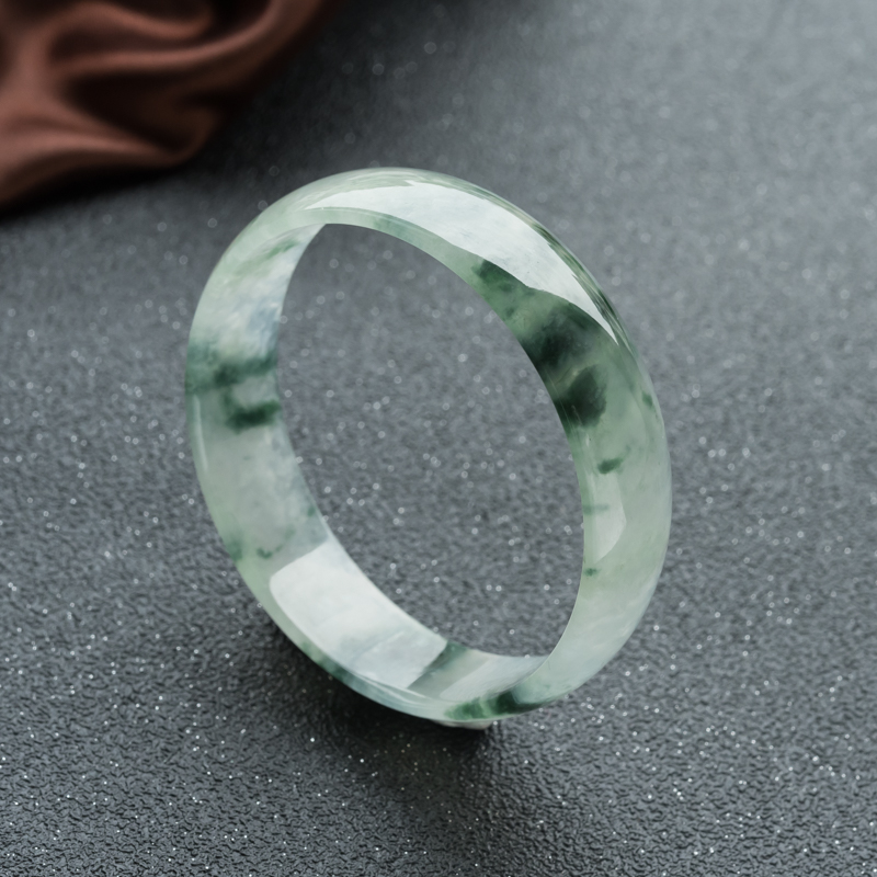 • [名  称] 49mm糯冰种飘花翡翠平安镯