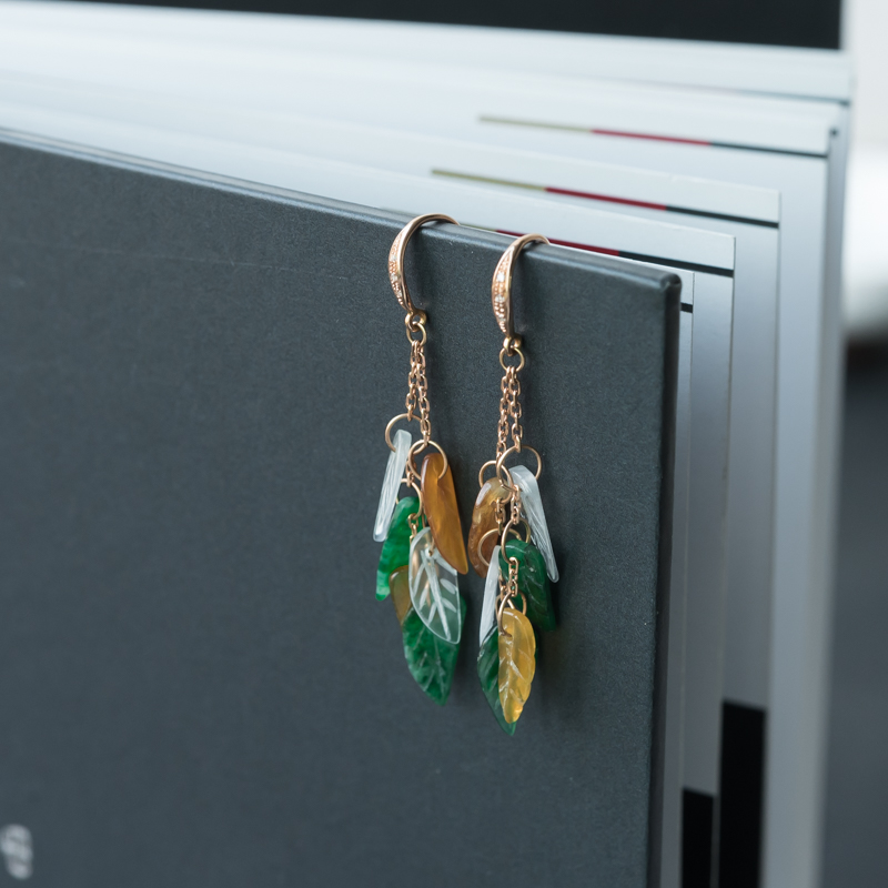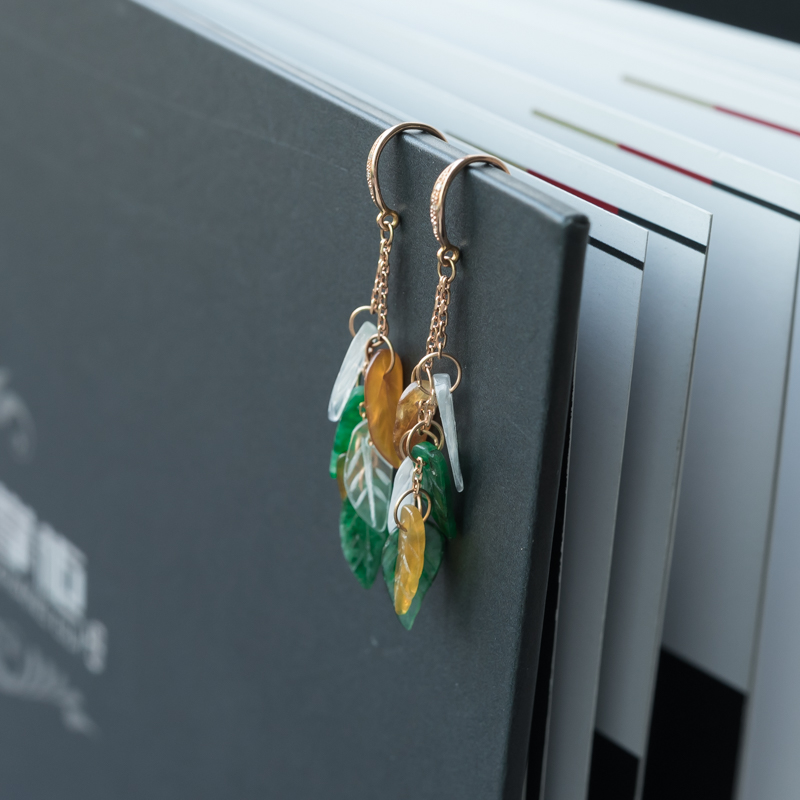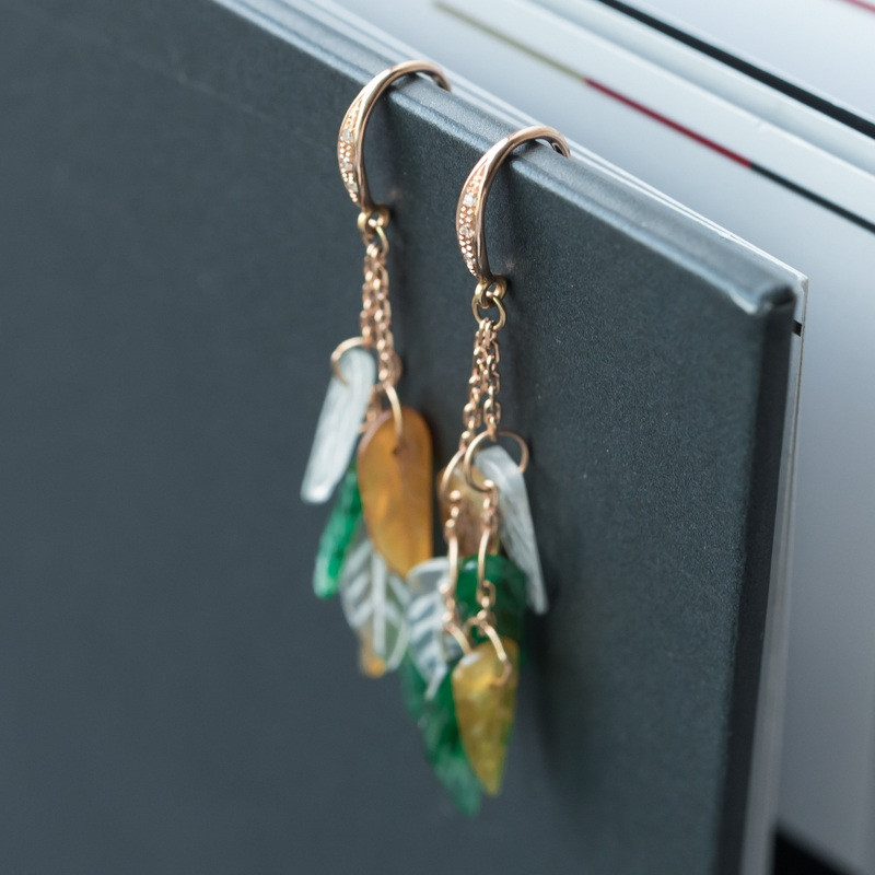 • 18K糯冰种翡翠金枝玉叶耳坠
