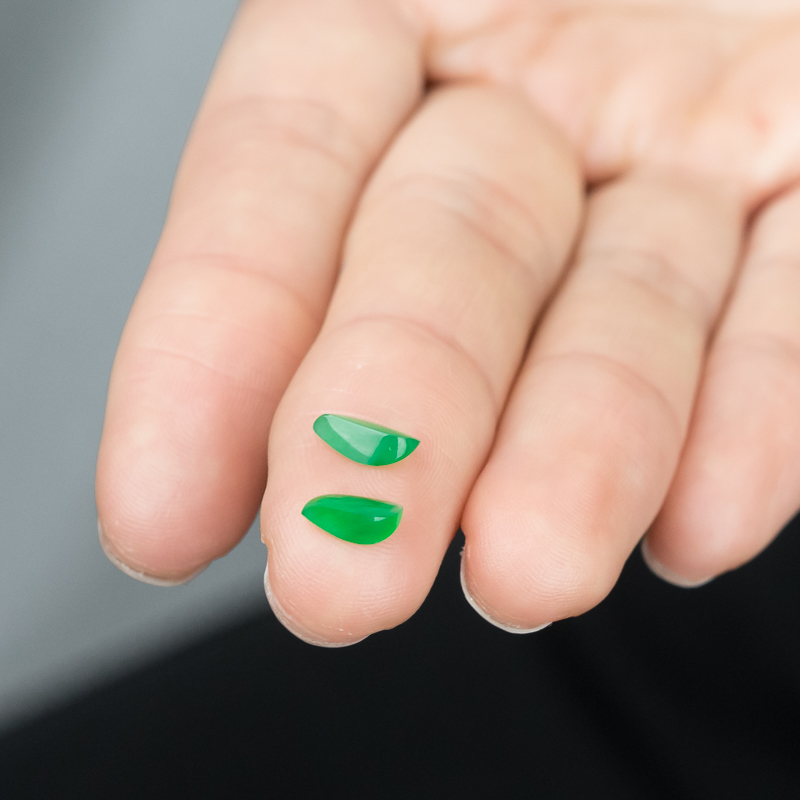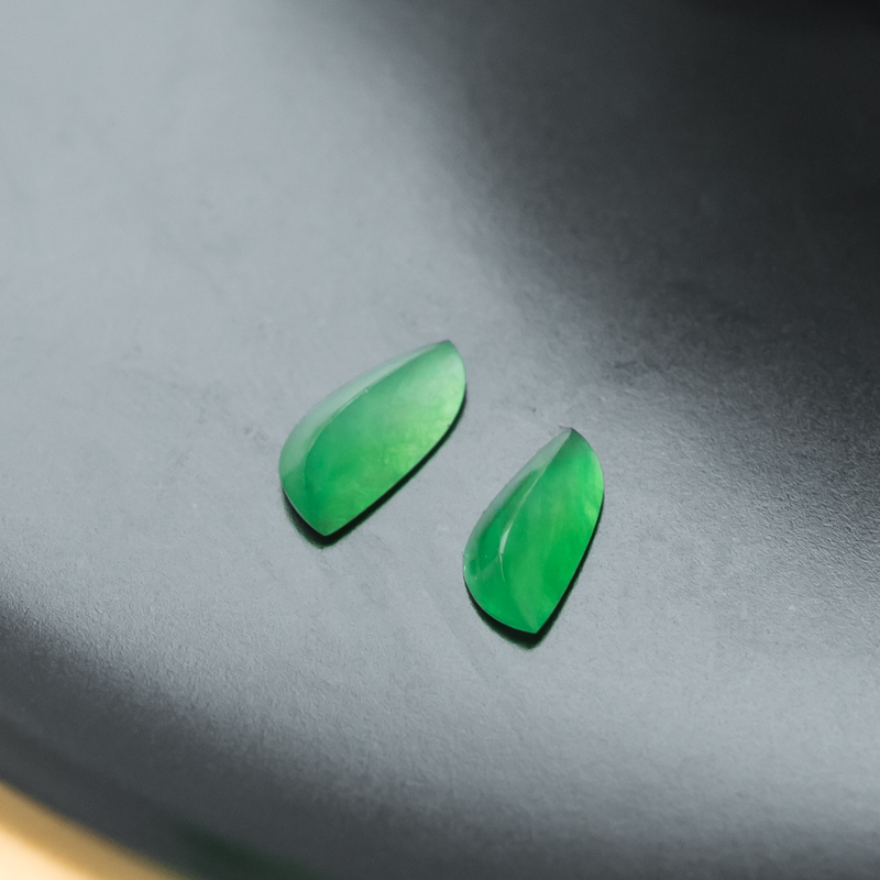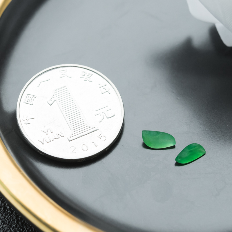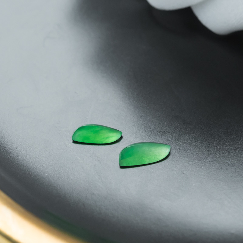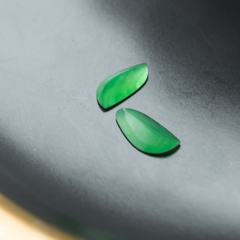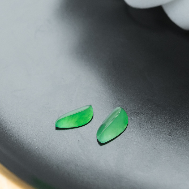 • 糯冰种翠绿翡翠戒面(两粒)
