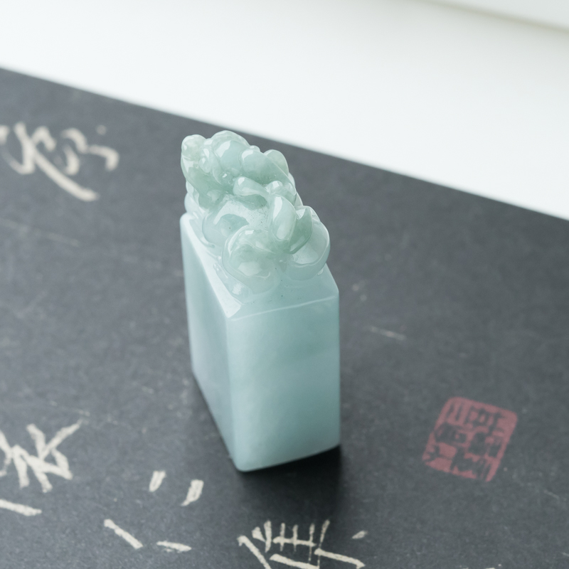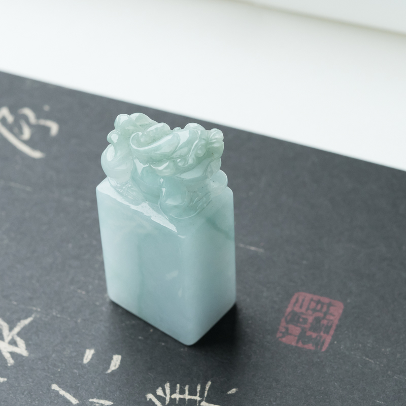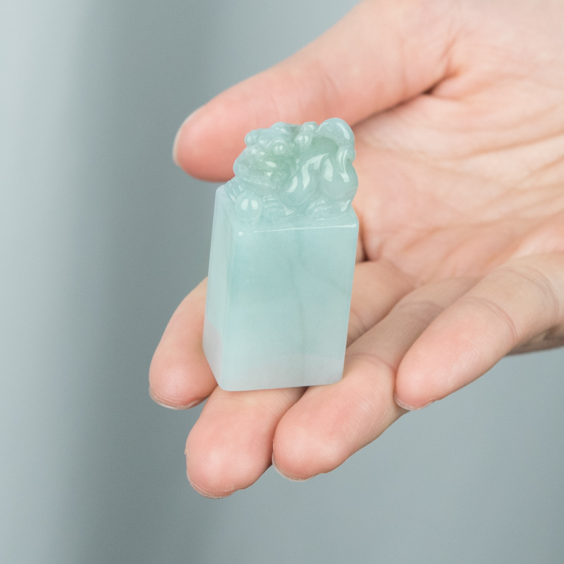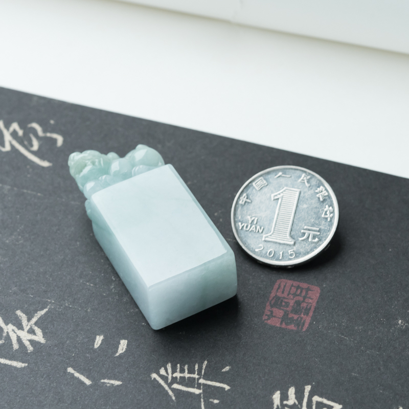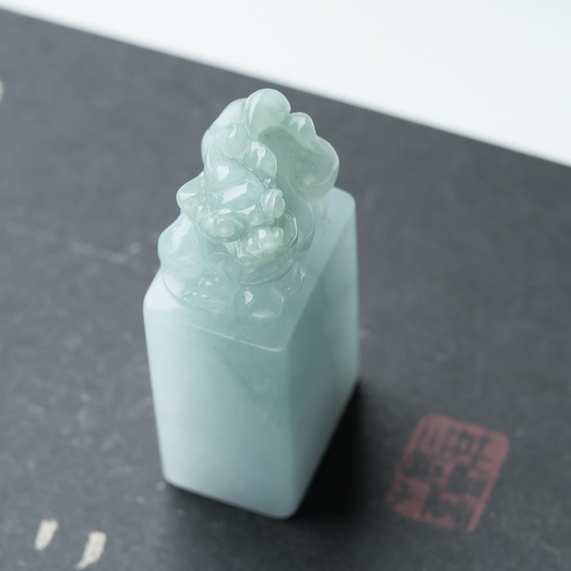 • [名  称] 糯冰种浅绿翡翠貔貅印章