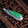 • 18k糯冰种翠绿翡翠连中三元吊坠