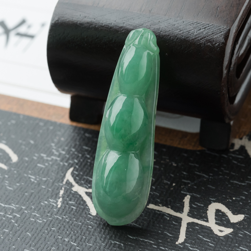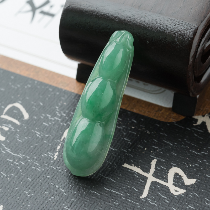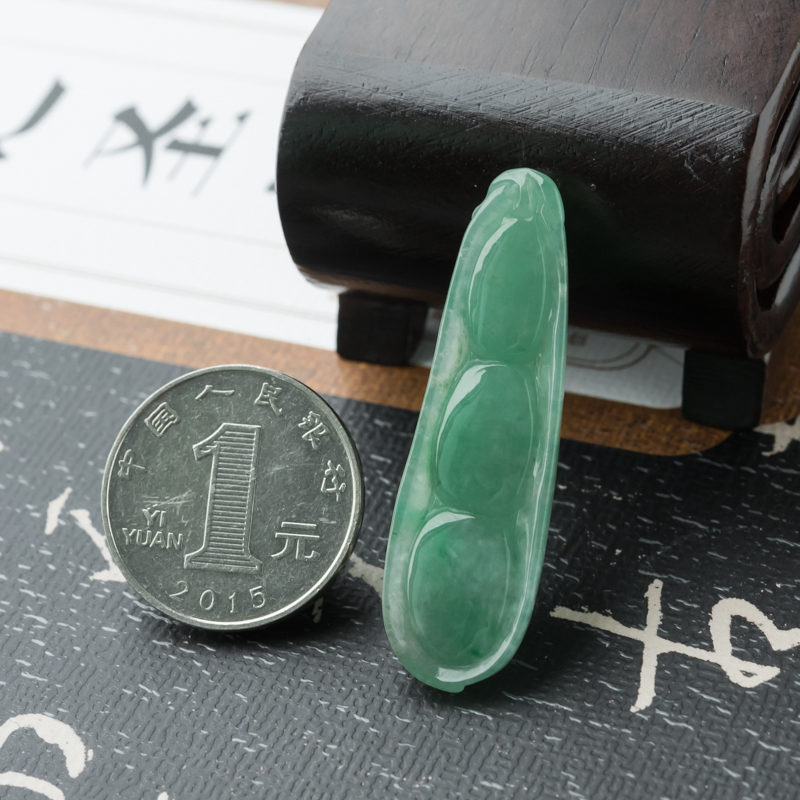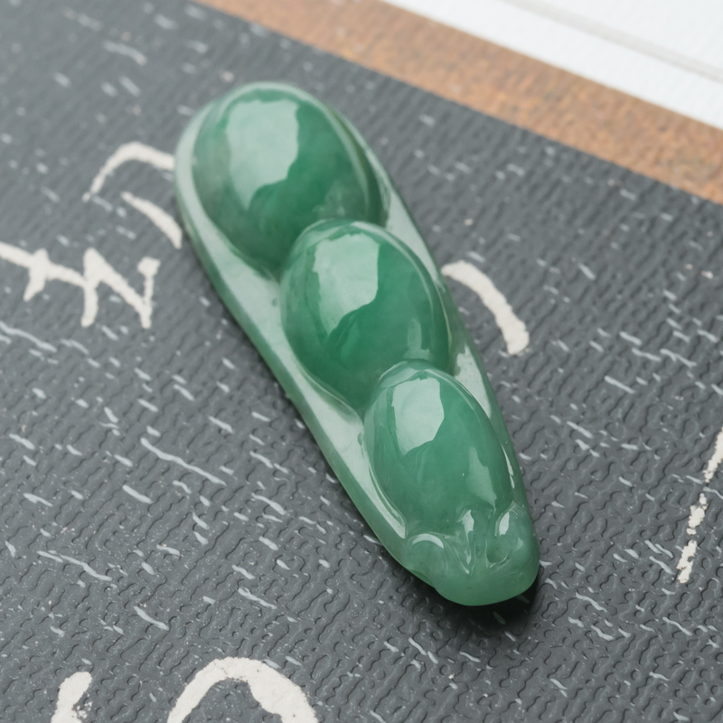 • [名  称] 糯冰种深绿翡翠福豆吊坠