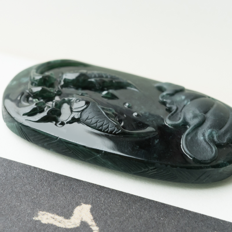 • [名  称] 糯冰种墨翠连年有余吊坠