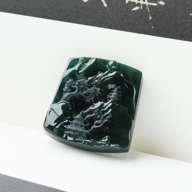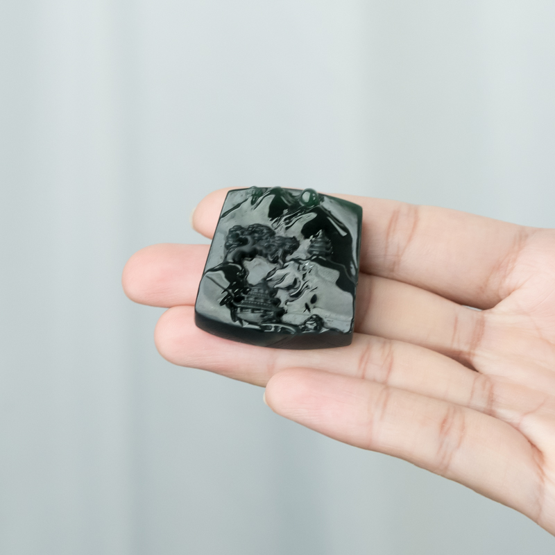 • 糯冰种墨翠青山远黛吊坠