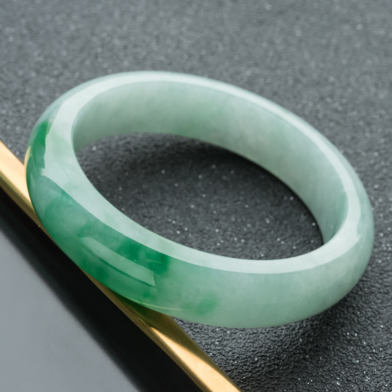 • [名  称] 56.5mm糯冰种飘翠翡翠平安镯