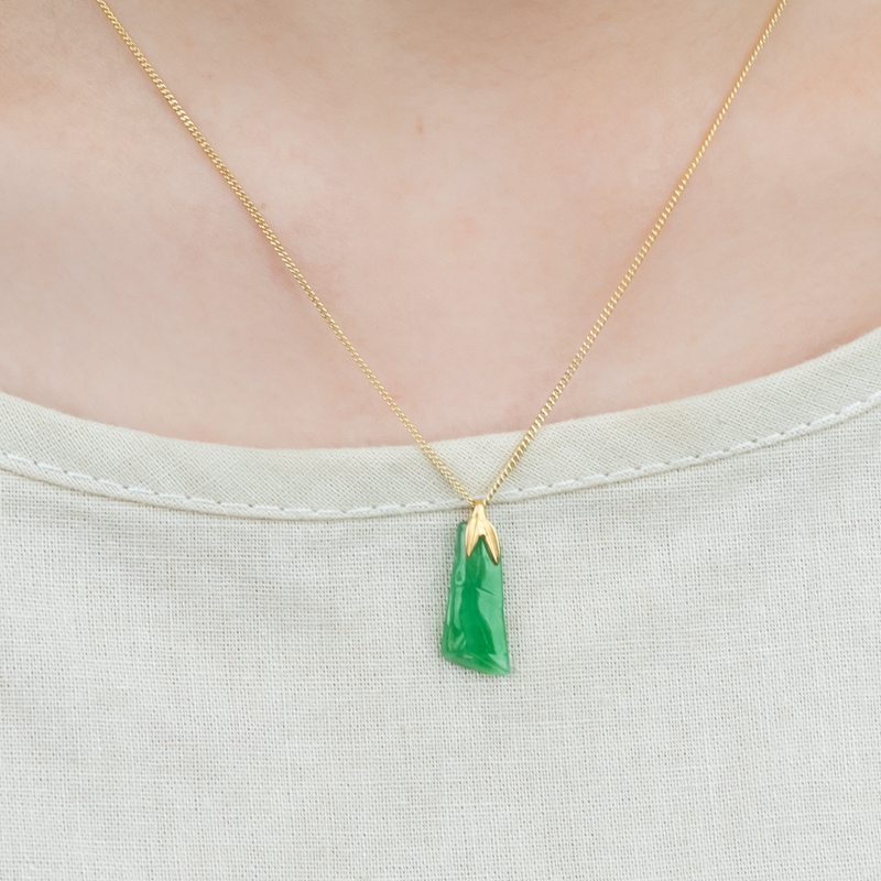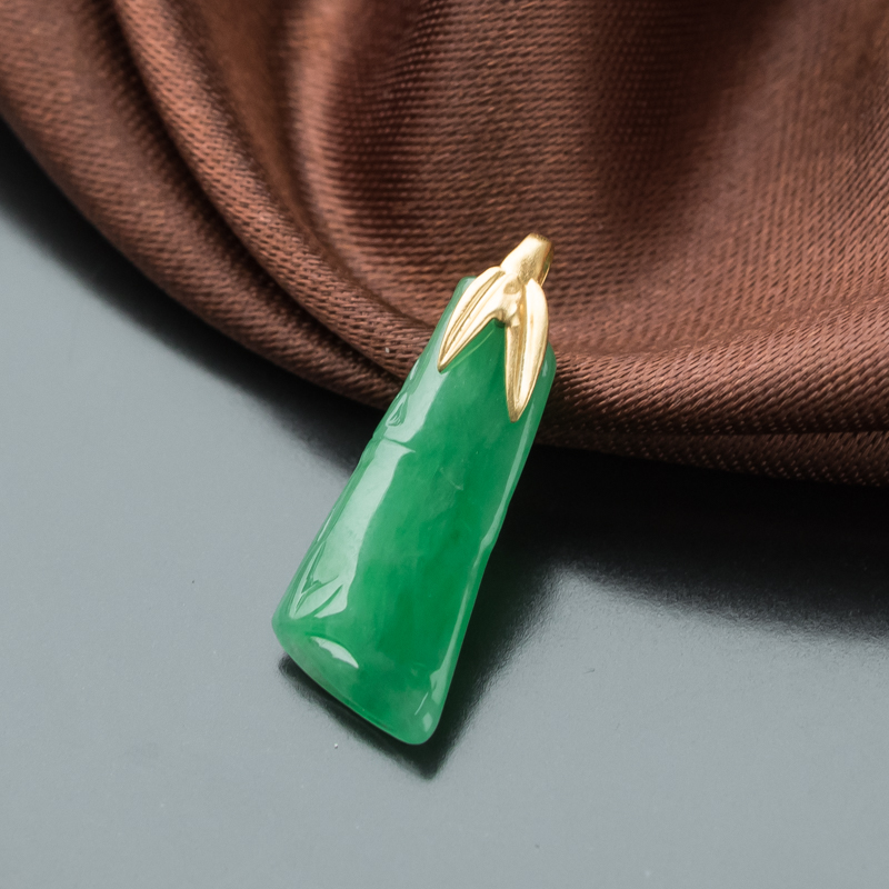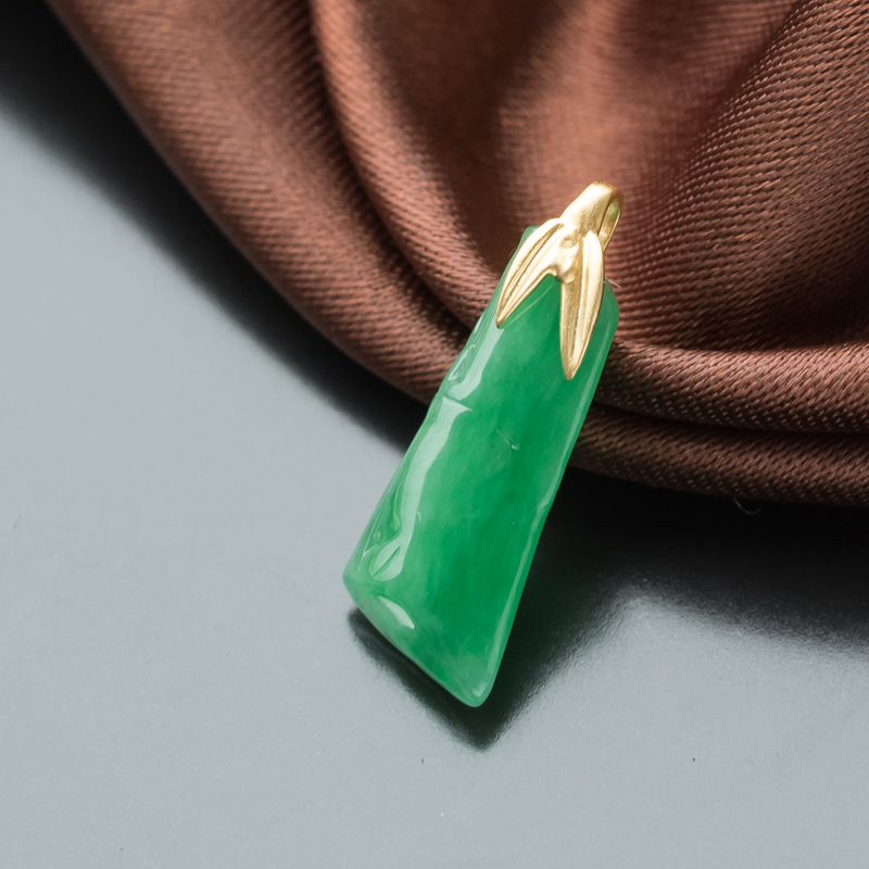 • 18K糯冰种翠绿翡翠节节高升吊坠