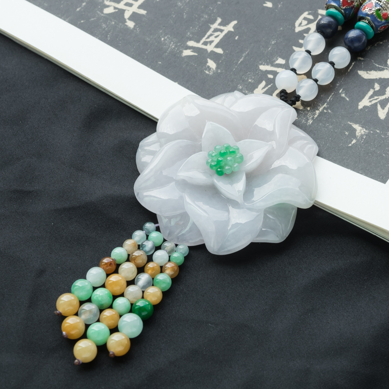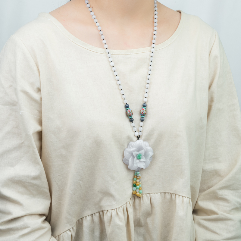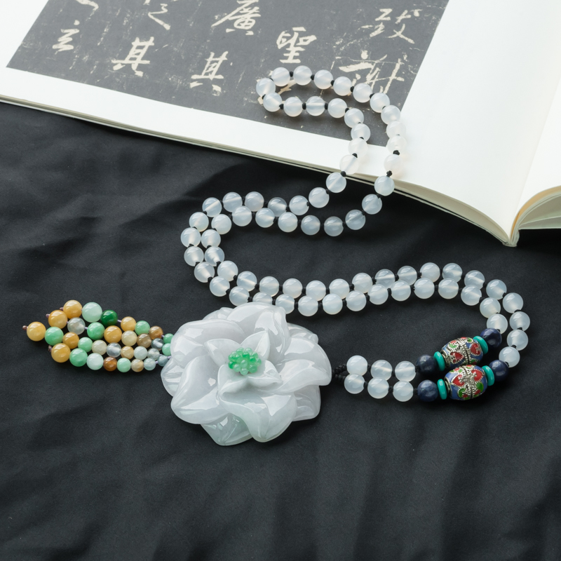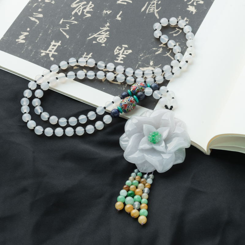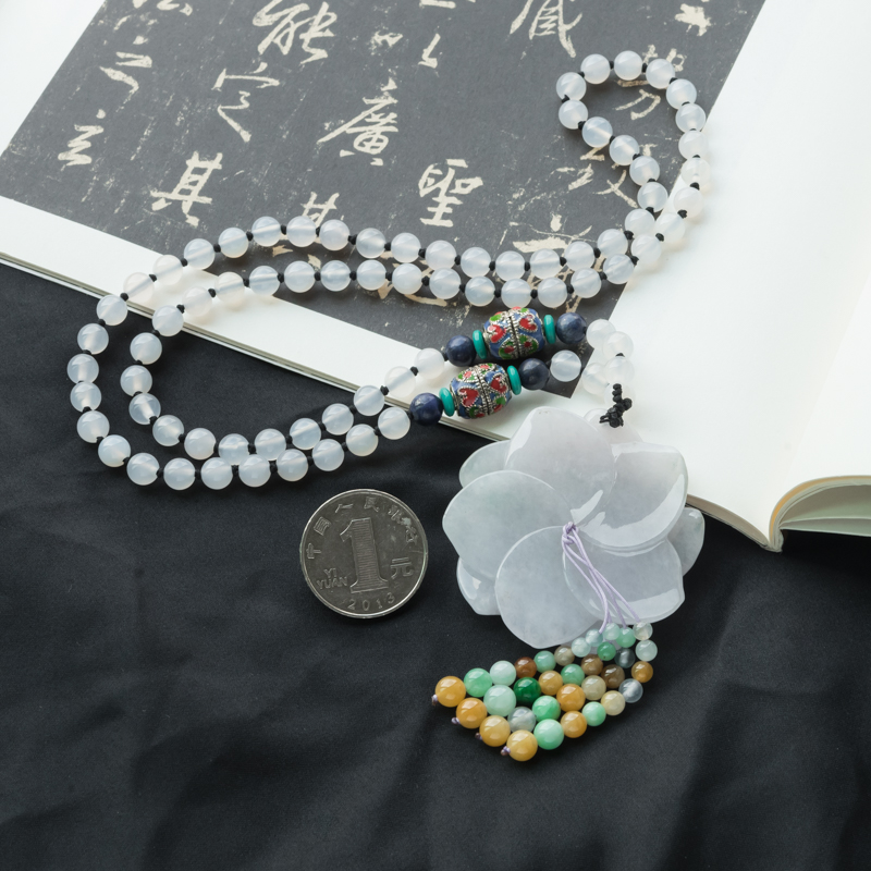 • [产品描述] 配饰:烧蓝;配链珠:玉髓、绿松、青金