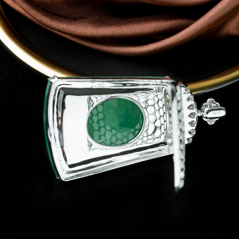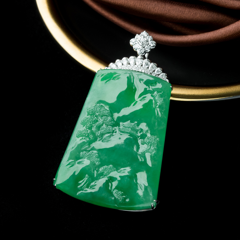• 18K糯冰种翠绿翡翠青山远黛吊坠