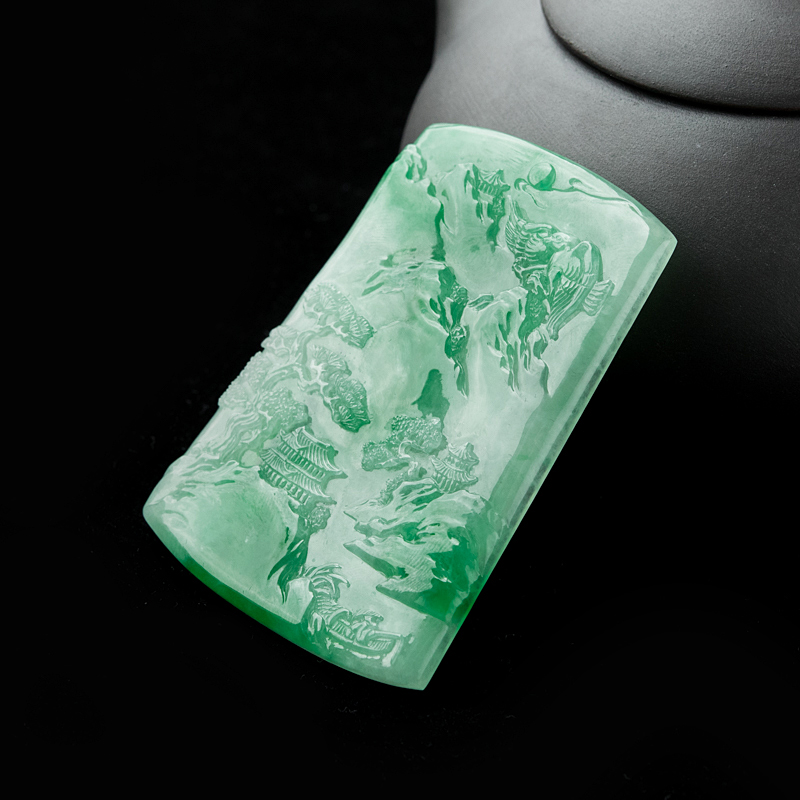 • [名  称] 糯冰种飘翠翡翠山水意境吊坠