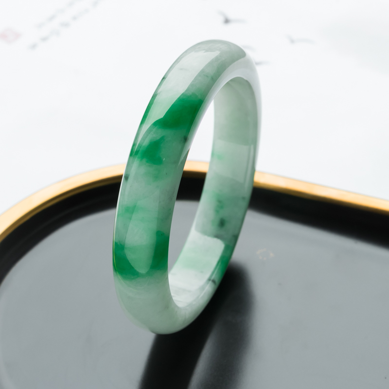 • [名  称] 57.5mm糯冰种飘翠翡翠平安镯