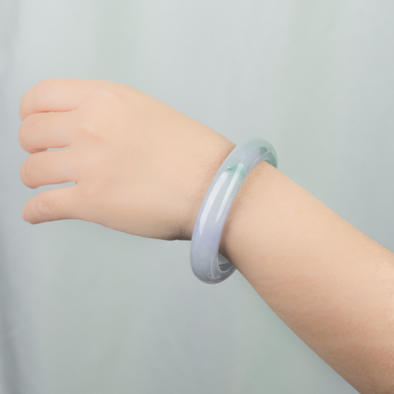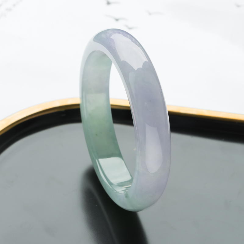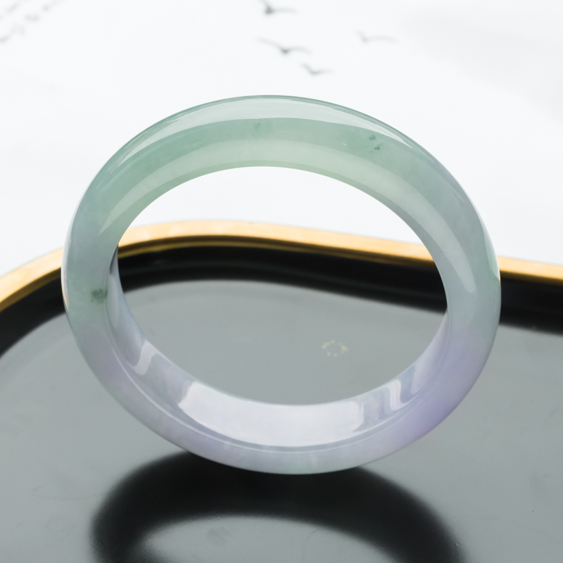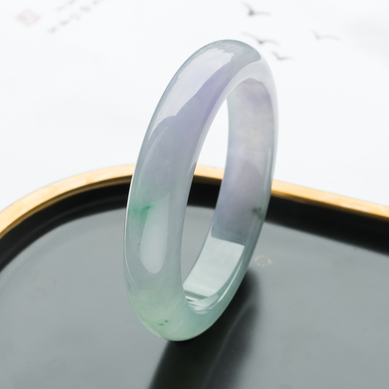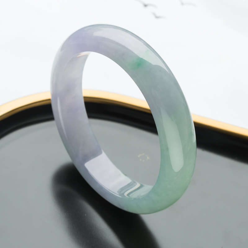 • [名  称] 56.5mm糯冰种春带彩翡翠平安镯
