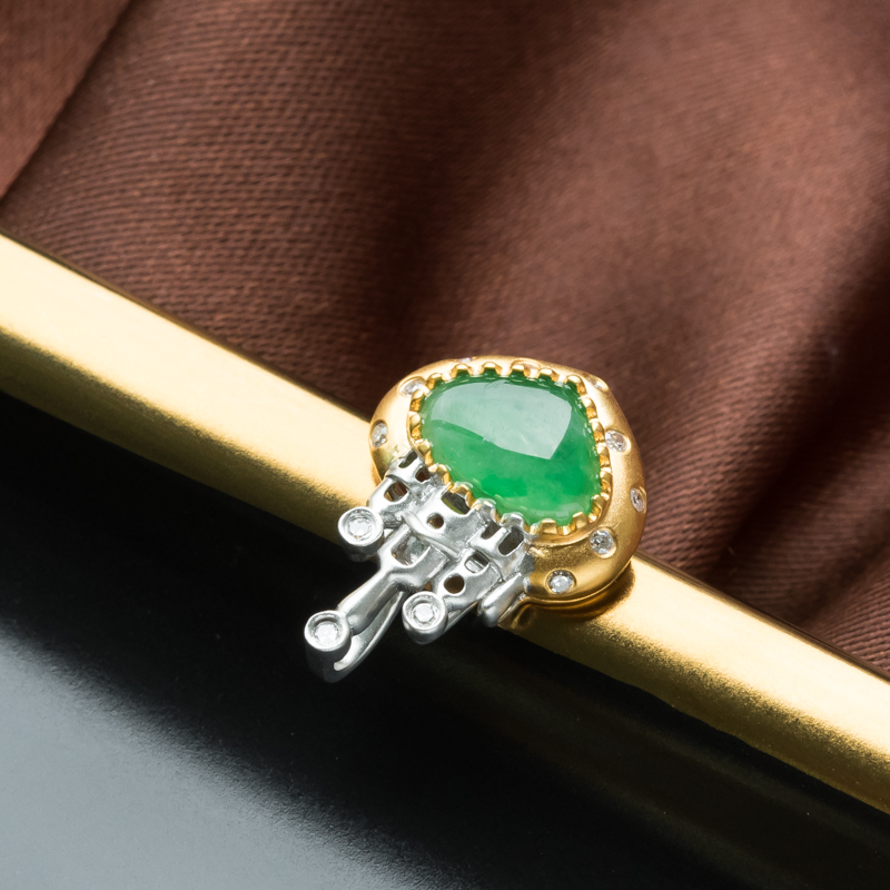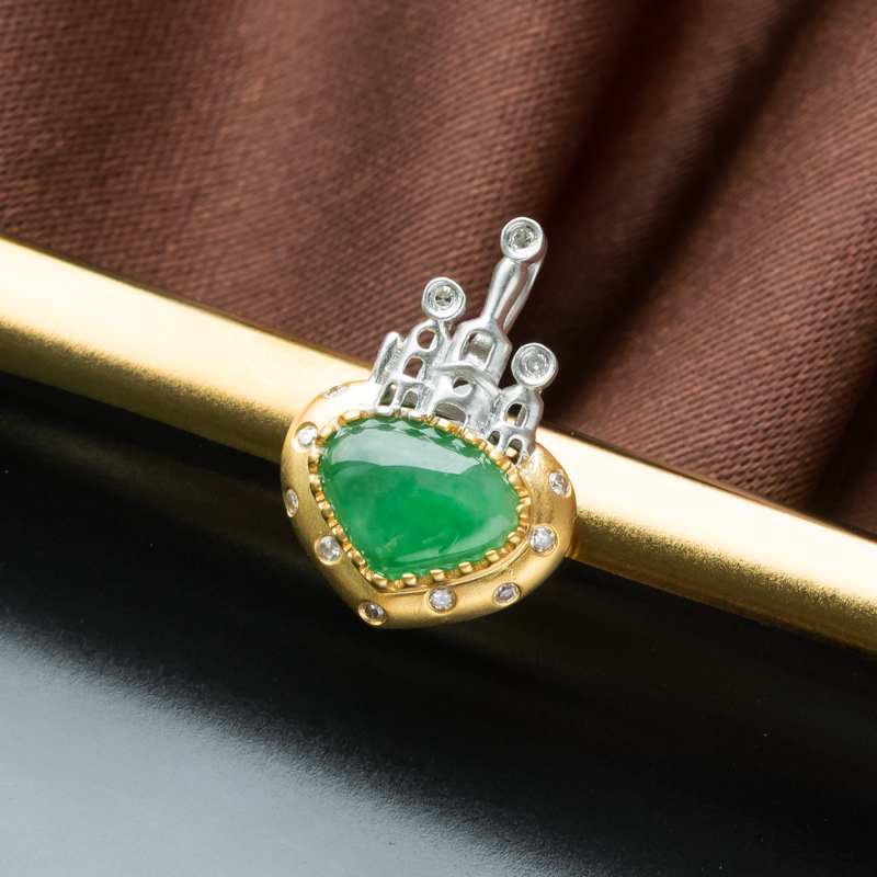 • 18K糯冰种苹果绿翡翠城堡吊坠