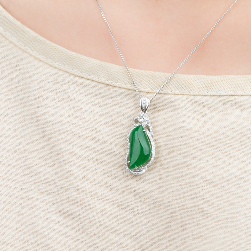• 18K糯冰种翠绿翡翠吊坠