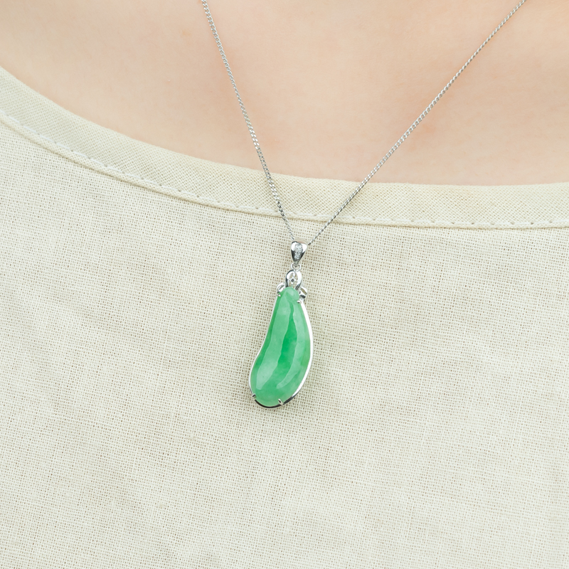• 18K糯冰种翠绿翡翠福瓜吊坠
