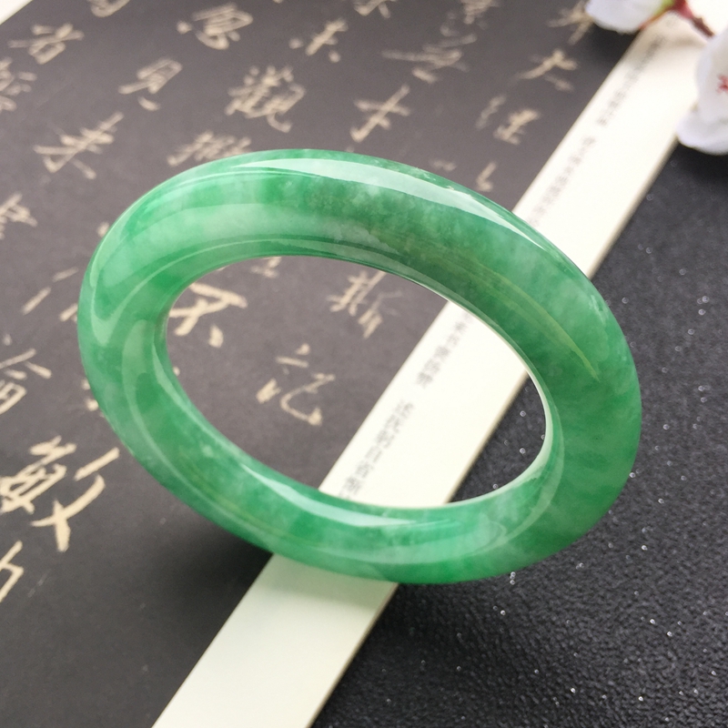 • [名  称] 55mm糯冰种翠绿翡翠圆镯