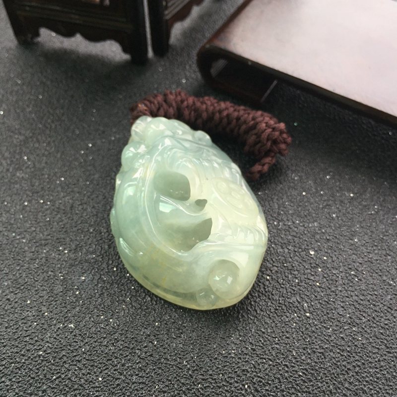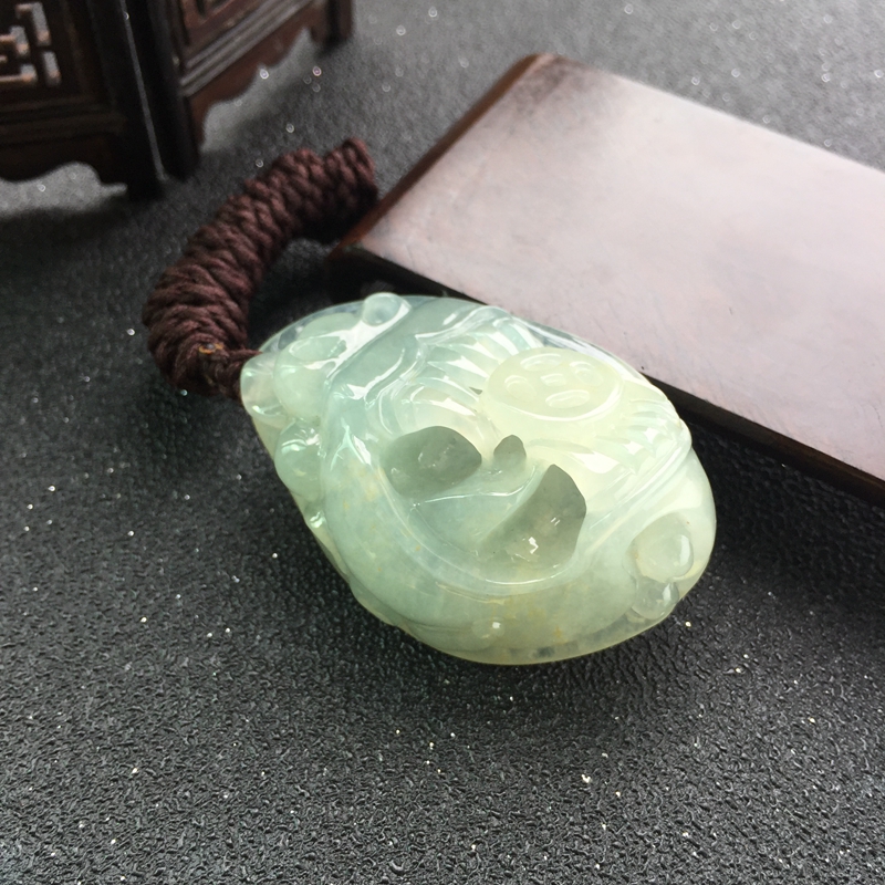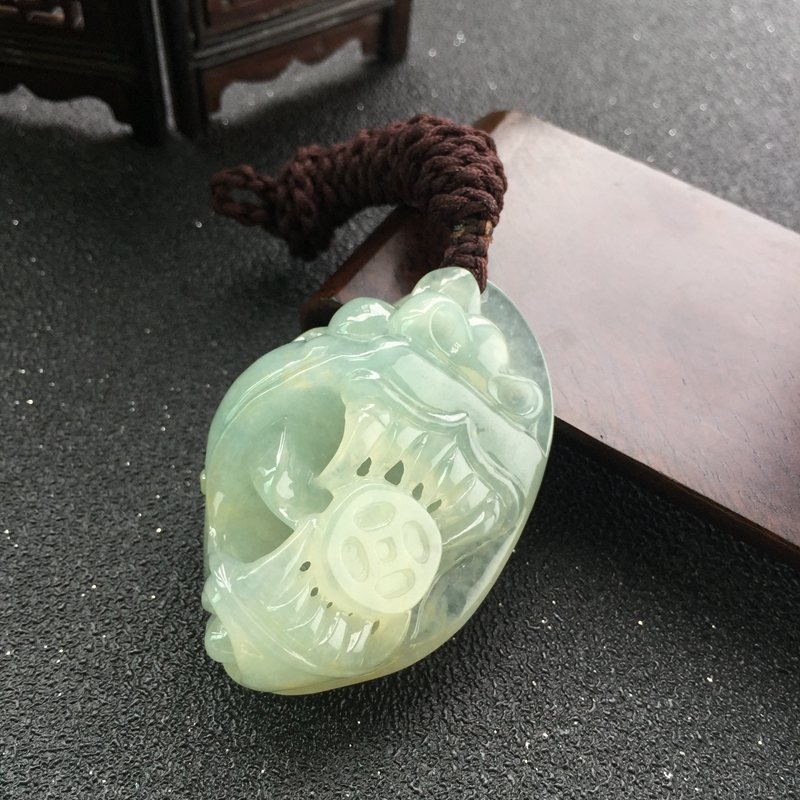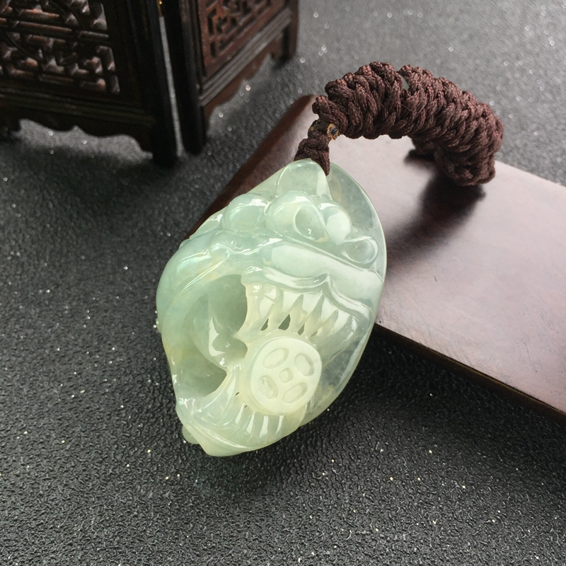 • [名  称] 糯冰种浅绿翡翠兽头吊坠