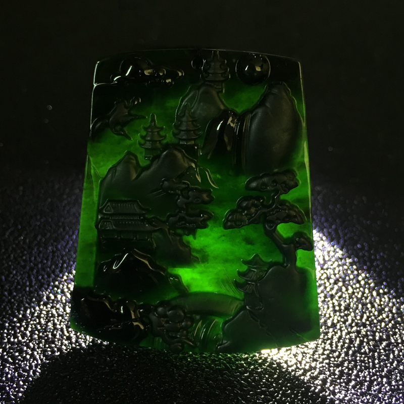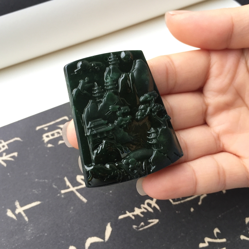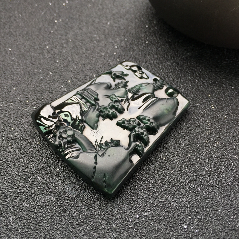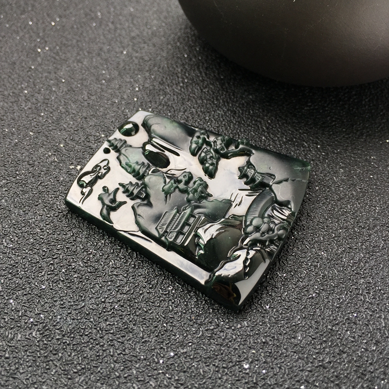 • 糯冰种墨翠青山远黛吊坠