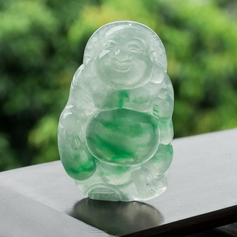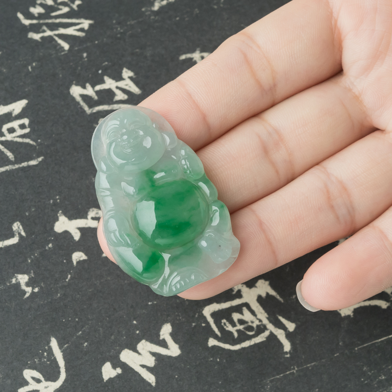 • 糯冰种飘翠翡翠弥勒佛吊坠