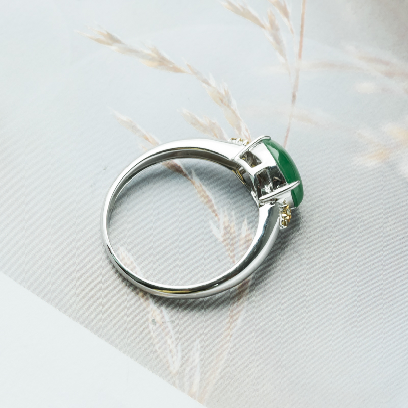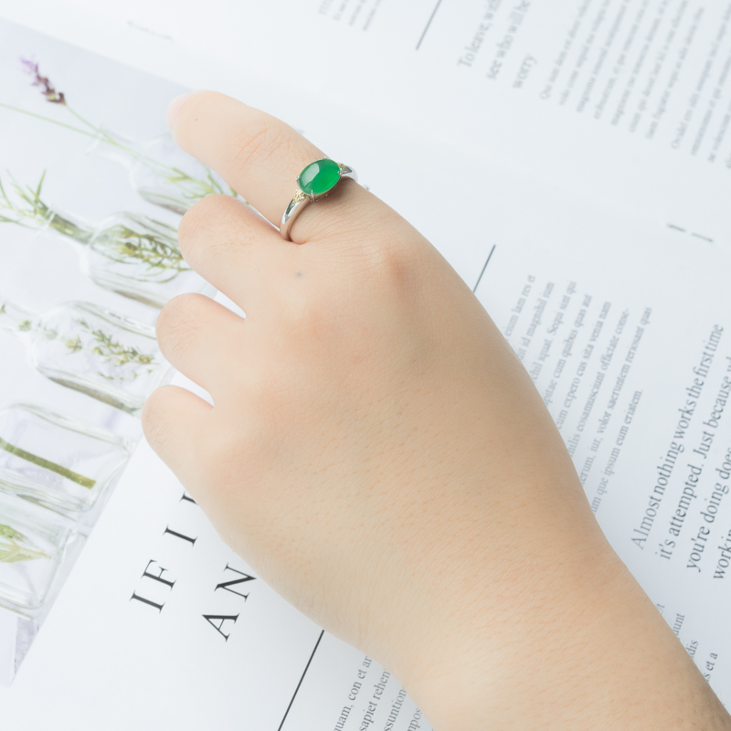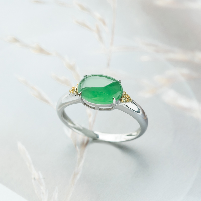 • 18K糯冰种翠绿翡翠戒指