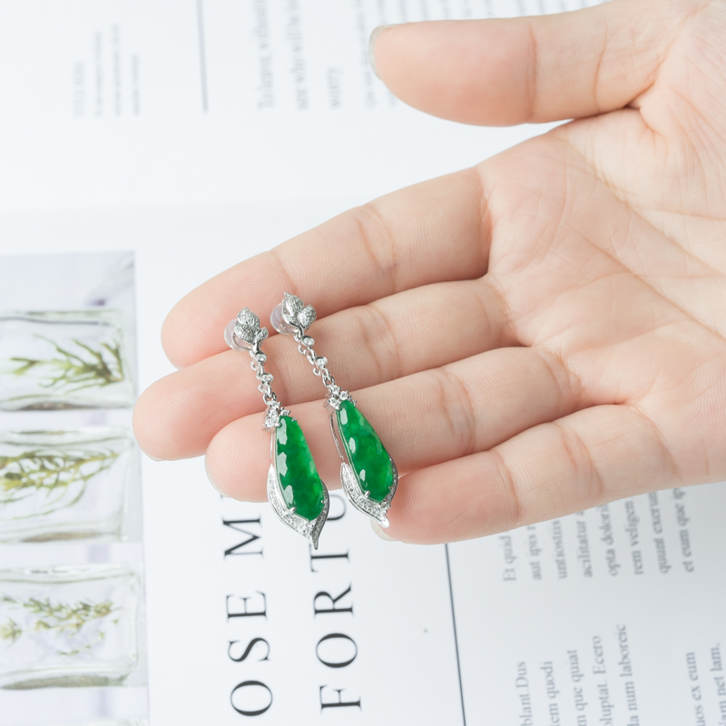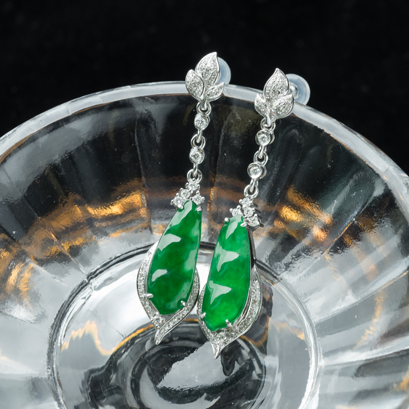 • 18K糯冰种阳绿翡翠福豆耳坠