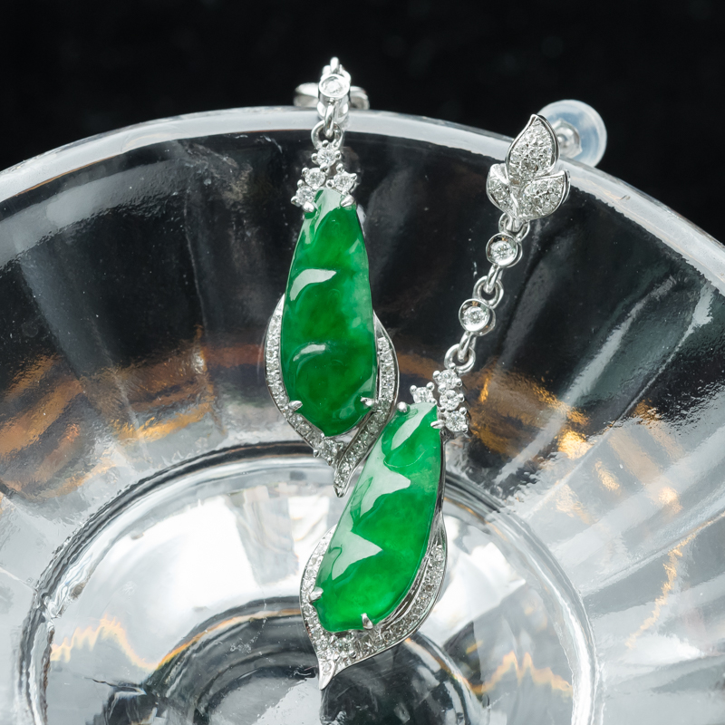 • [名  称] 18K糯冰种阳绿翡翠福豆耳坠