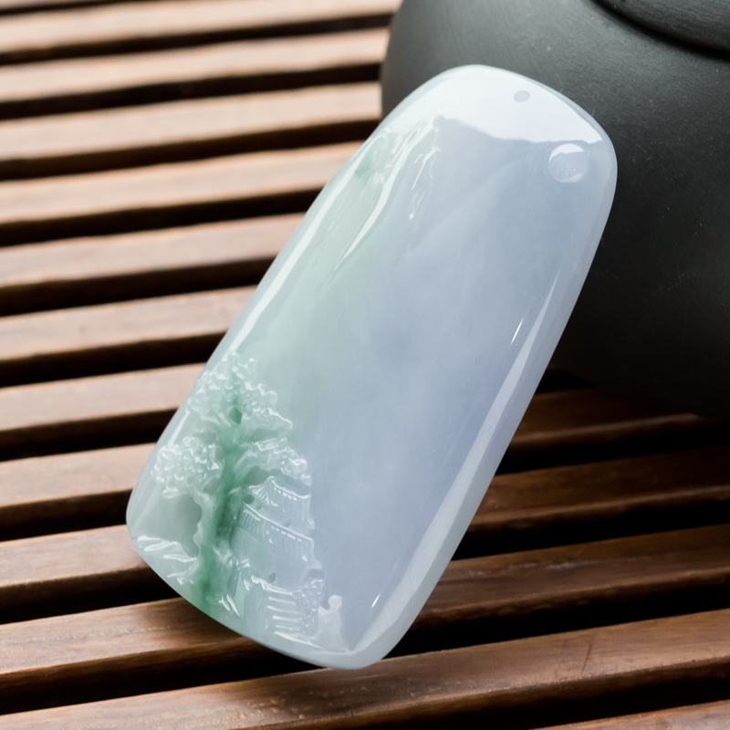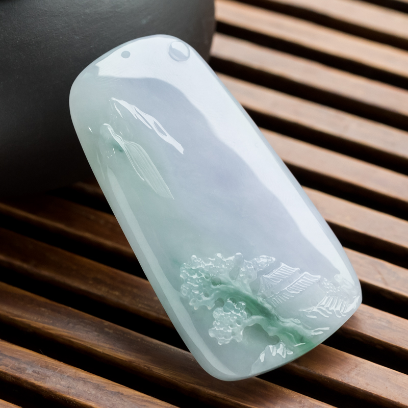 • [名  称] 糯冰种春带彩翡翠山水意境吊坠