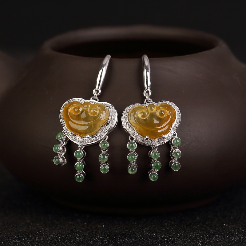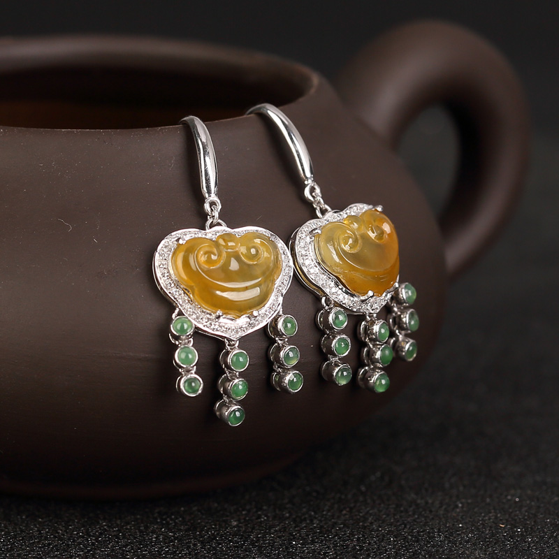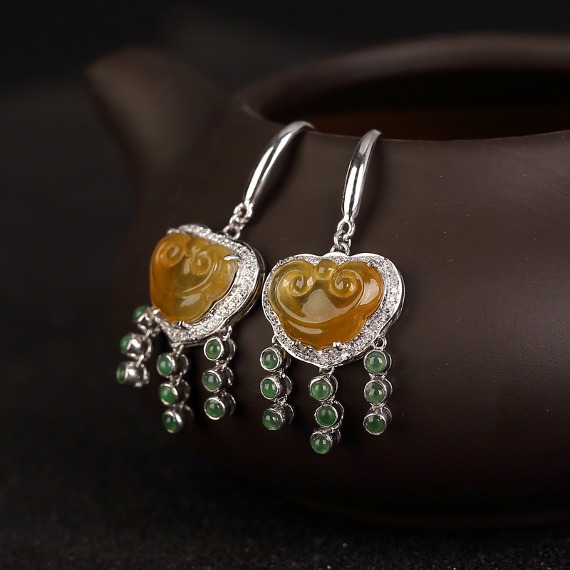 • [名  称] 18K糯冰种黄翡如意耳坠