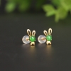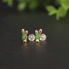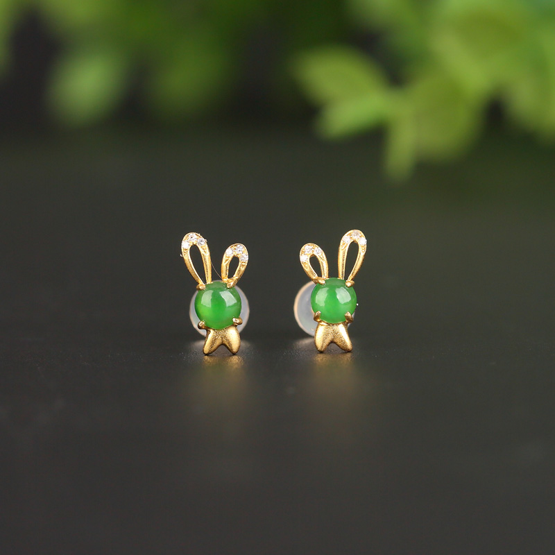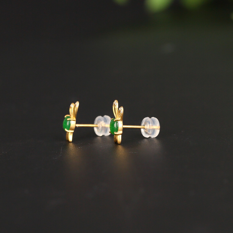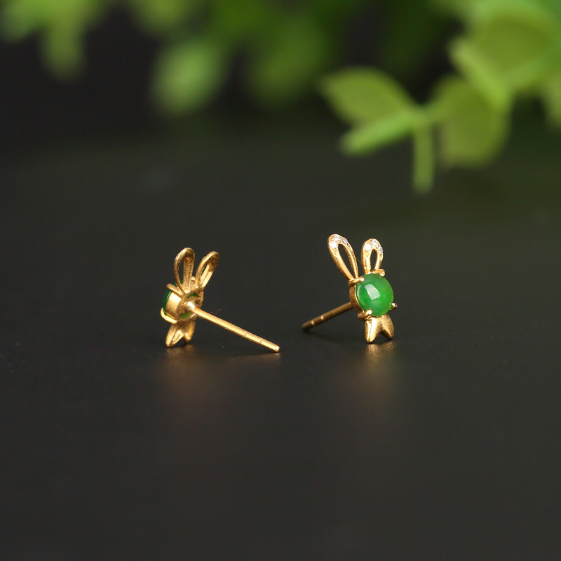 • 18K糯冰种阳绿翡翠兔子耳钉